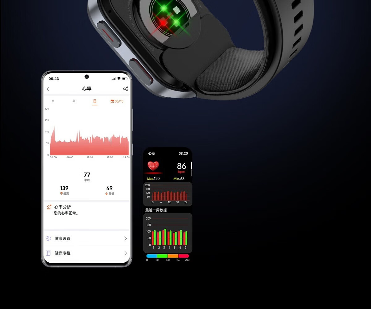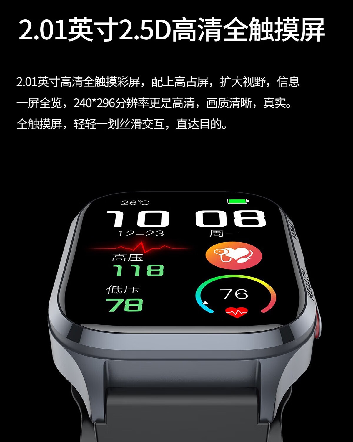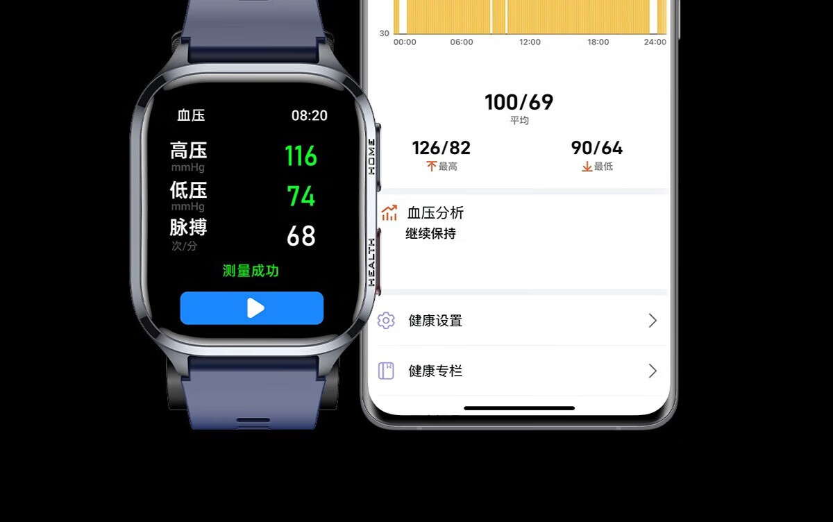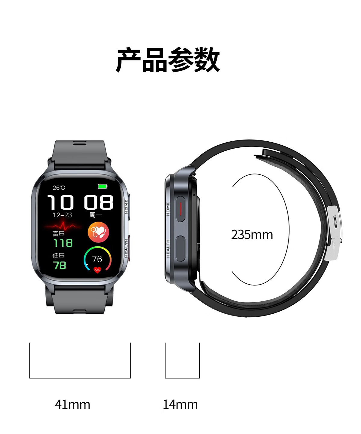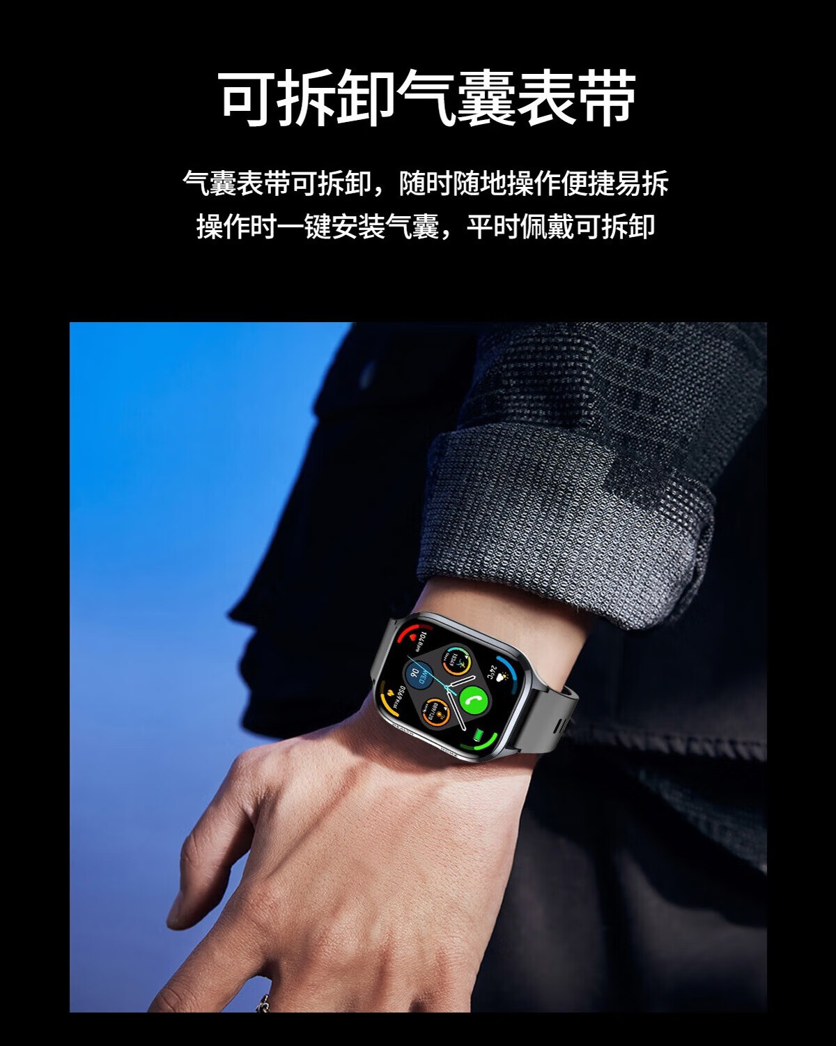 Mucci blood pressure watch, abnormal heart rate alarm, real-time automatic health monitoring for the elderly, smart blood oxygen detector, multifunctional sports sleep, medical grade, elegant black, medical grade, high-precision airbag pressurization, suitable for Huawei Apple machines