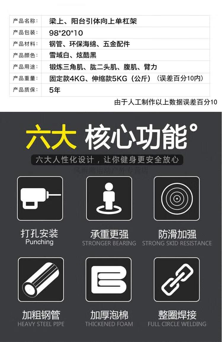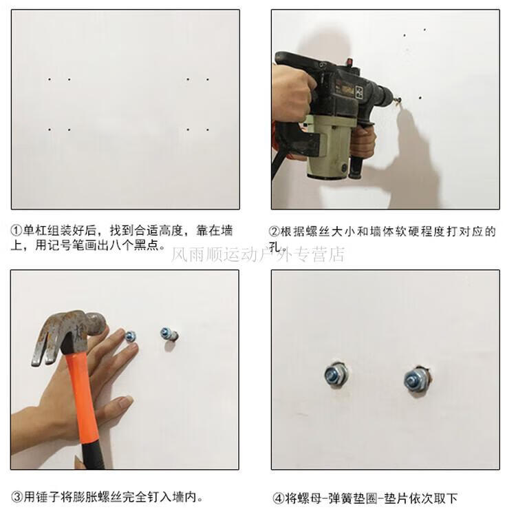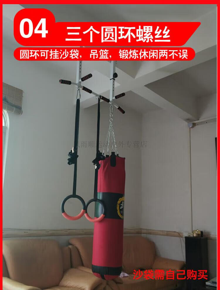 EVANOVM horizontal bar on beam, home wall, indoor pull-up device, adult beam side parallel bar, home fitness punching suspension bar, fixed black + hanging ring