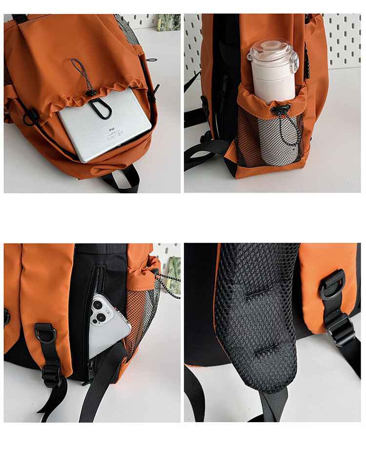 Qiaoyi Outdoor Mountaineering Backpack Commuting Travel Backpack Lightweight Water-Repellent Multi-Pocket Unisex Computer School Bag Backpack Orange