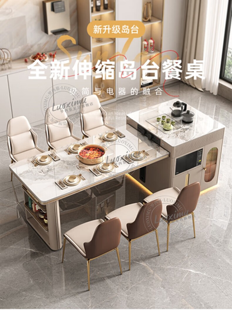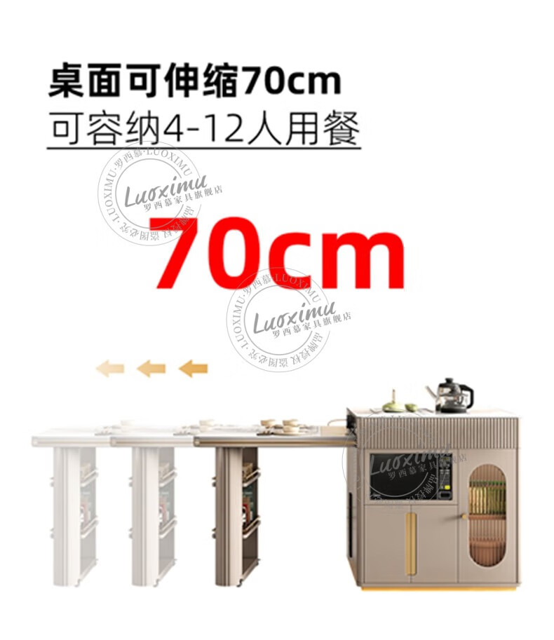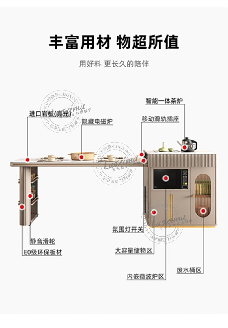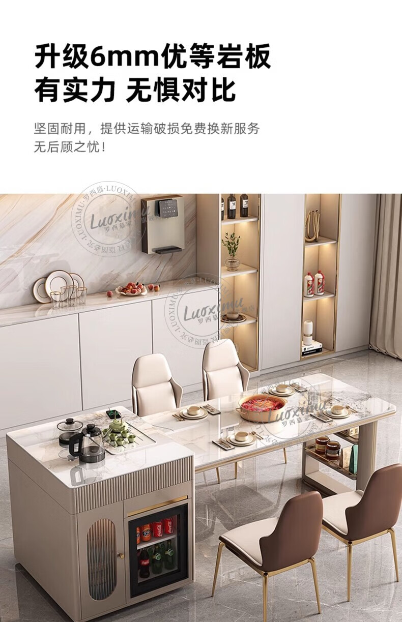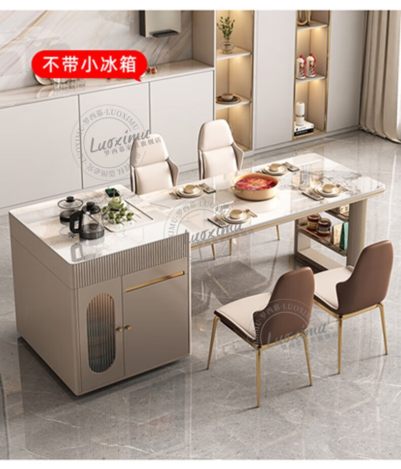 Rosimu slate island dining table integrated simple home kitchen multi-function with induction cooker refrigerator retractable island 1.4m sideboard with water dispenser