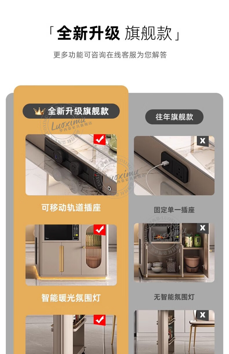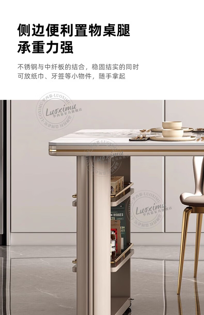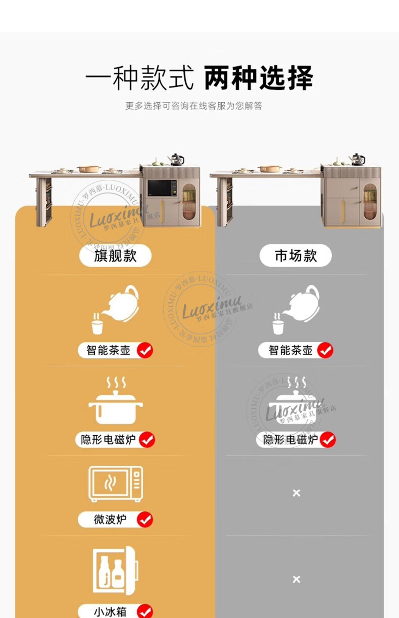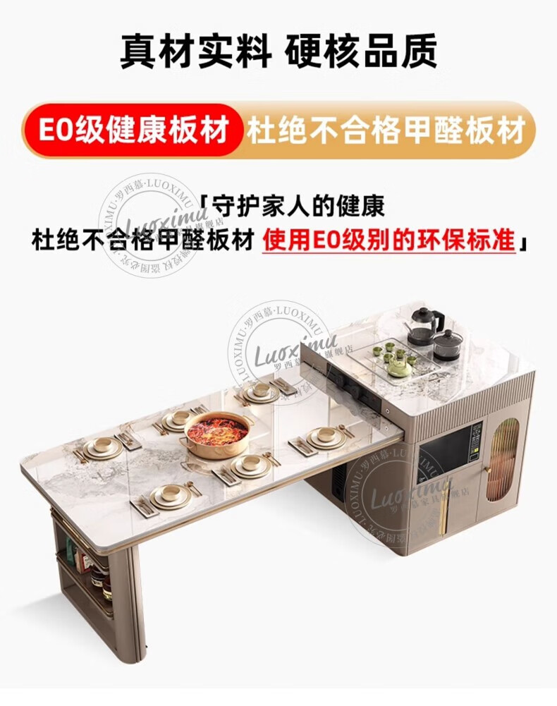 Rosimu slate island dining table integrated simple home kitchen multi-function with induction cooker refrigerator retractable island 1.4m sideboard with water dispenser