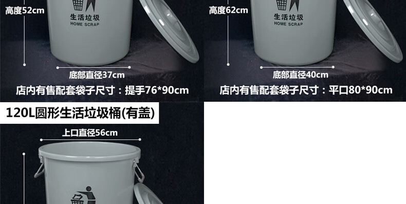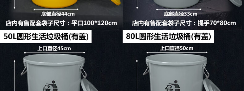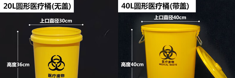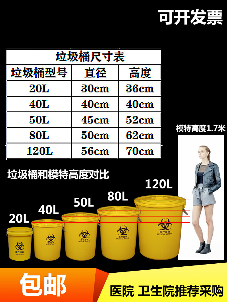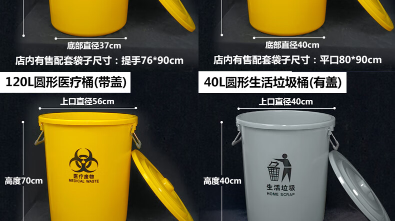 Medical trash can round waste bucket medical yellow thickened waste plastic bucket with lid without lid large commercial 120L round domestic trash can (with lid) plus