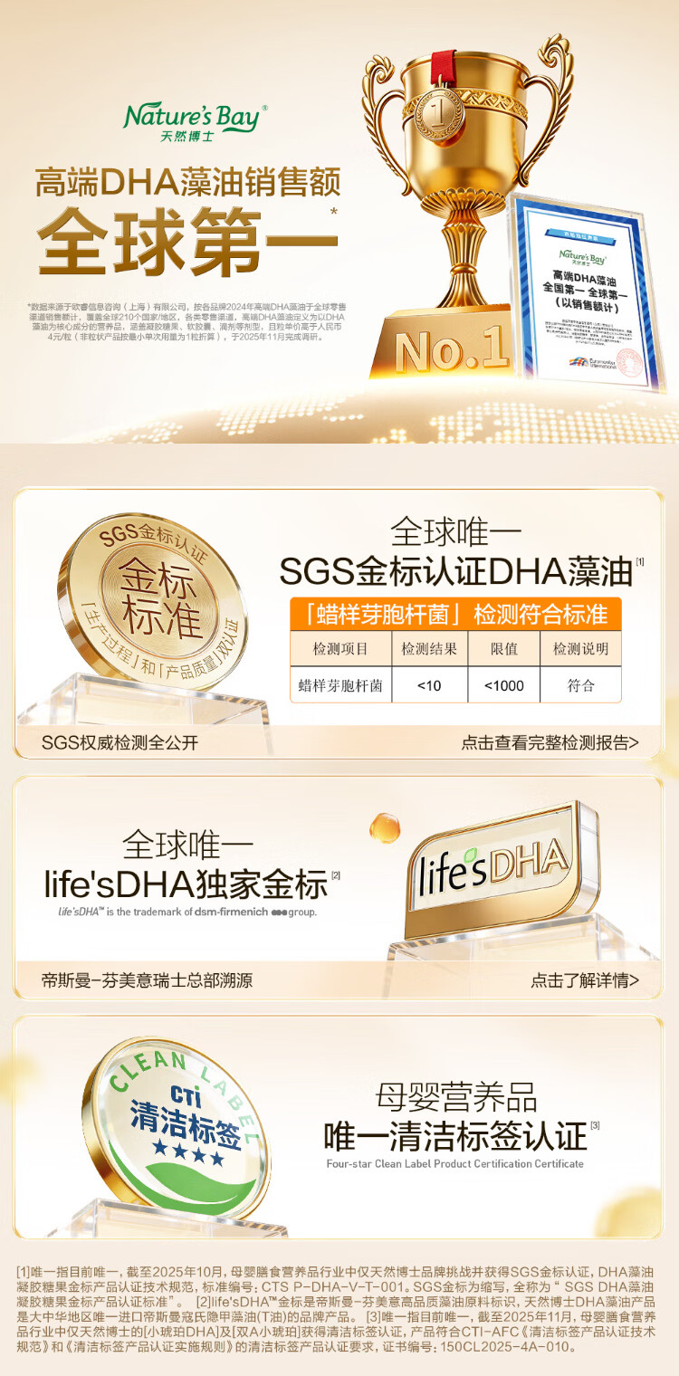 Natural Doctor dha infants and young children 0-3 years old Gold Label Algae Oil dha infants and children 1-3 years old dha can be consumed by children 3-12 years old. Free 2 bottles of VD Gold Label Algae Oil 60 capsules*2 boxes