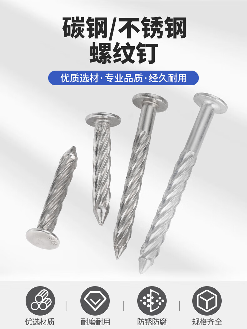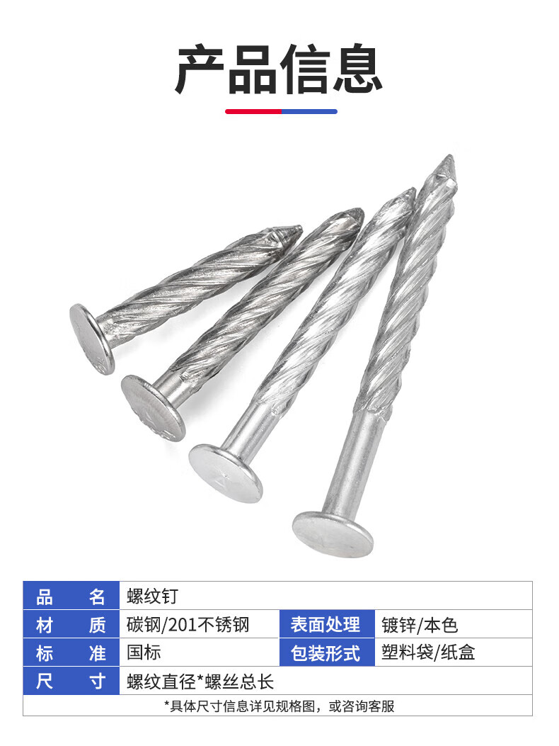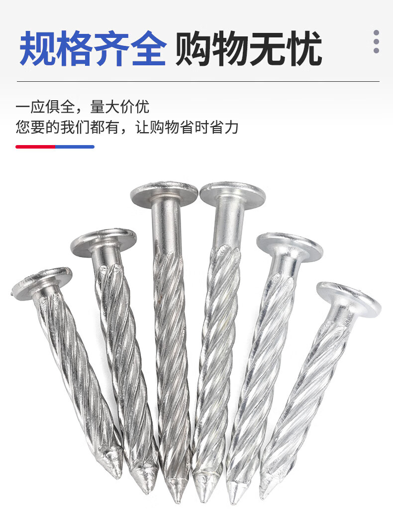 JINGGONG stainless steel threaded nails round head anti-theft net fixed nails twist nails steel nails cement nails pressure explosion threaded nails M8 galvanized 8*50 (50 pcs)