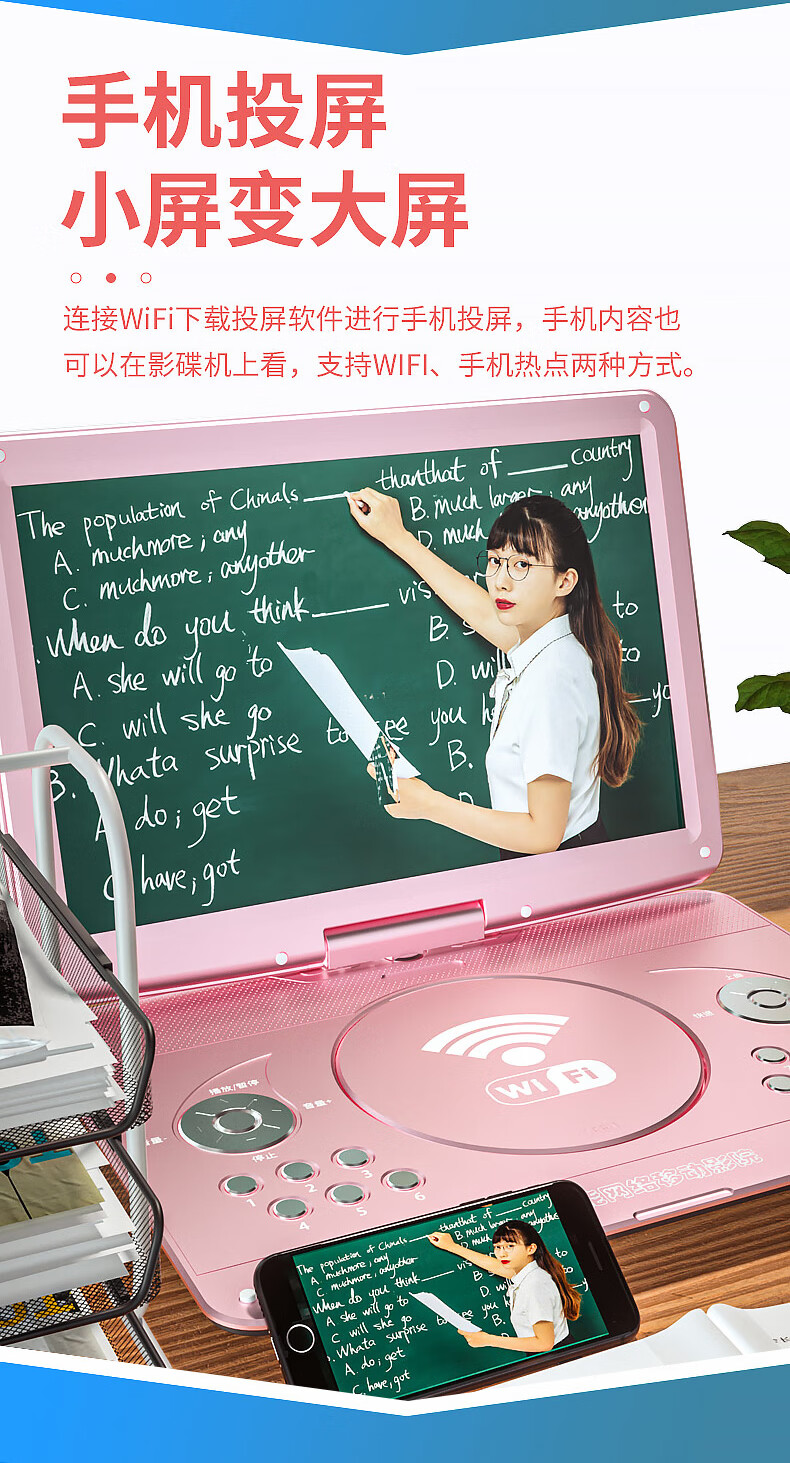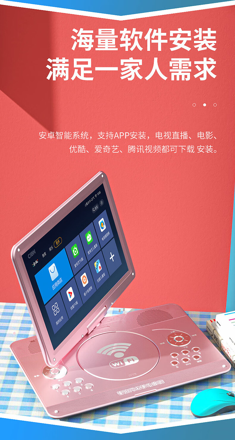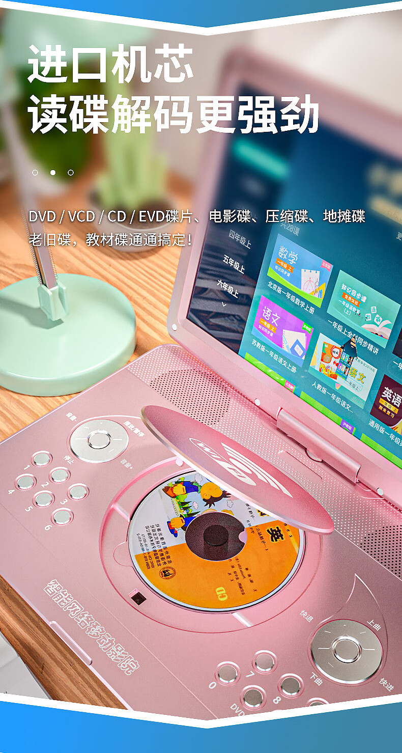 Xianke DVD player all-in-one HD VCD disc disc TV player video mobile English reading player learning machine multi-function 22# rose gold network WIFI HD version standard