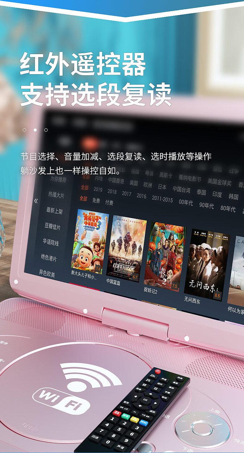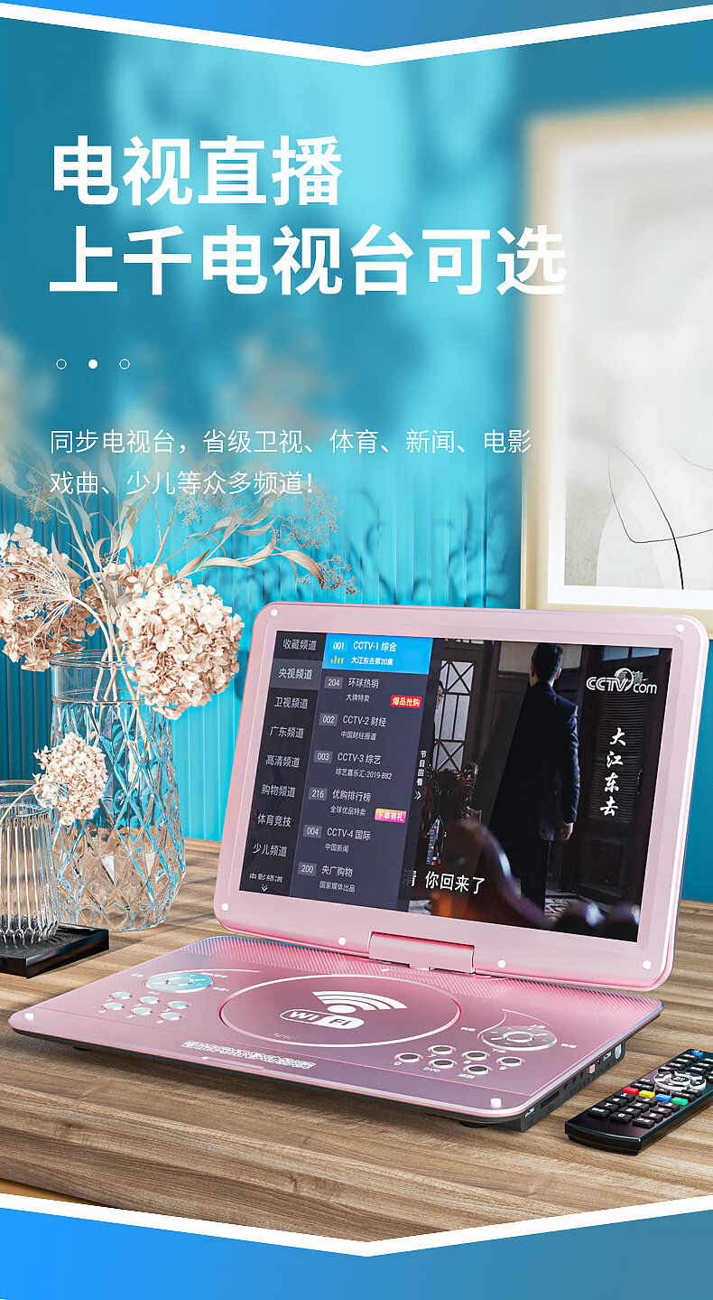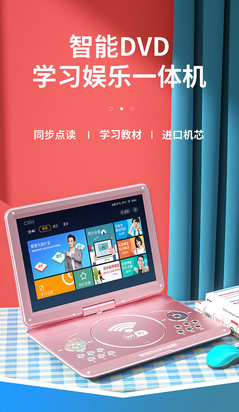 Xianke DVD player all-in-one HD VCD disc disc TV player video mobile English reading player learning machine multi-function 22# rose gold network WIFI HD version standard