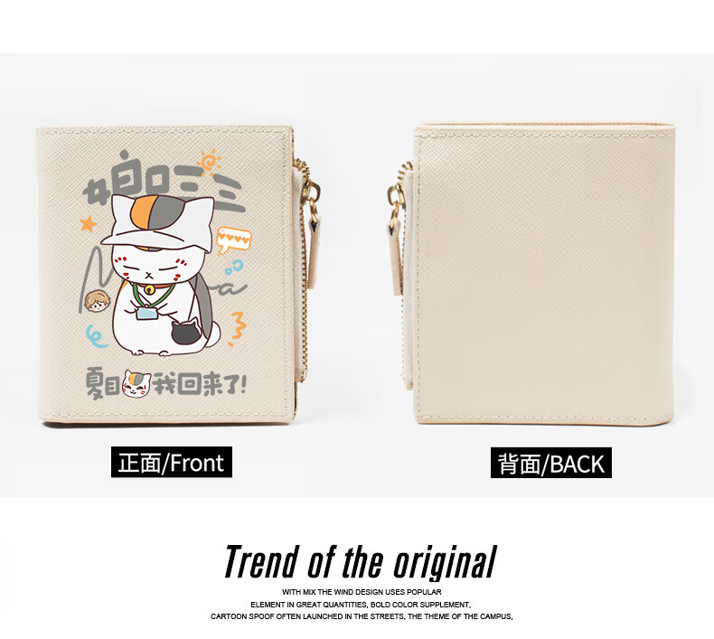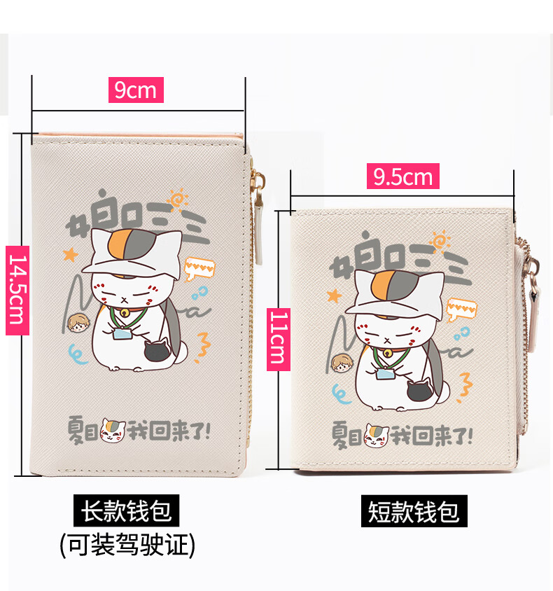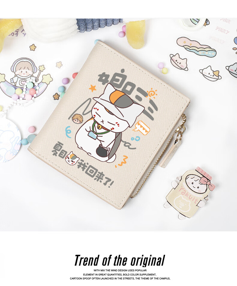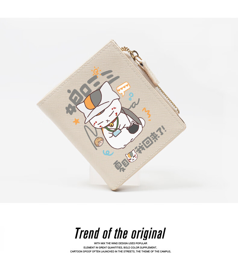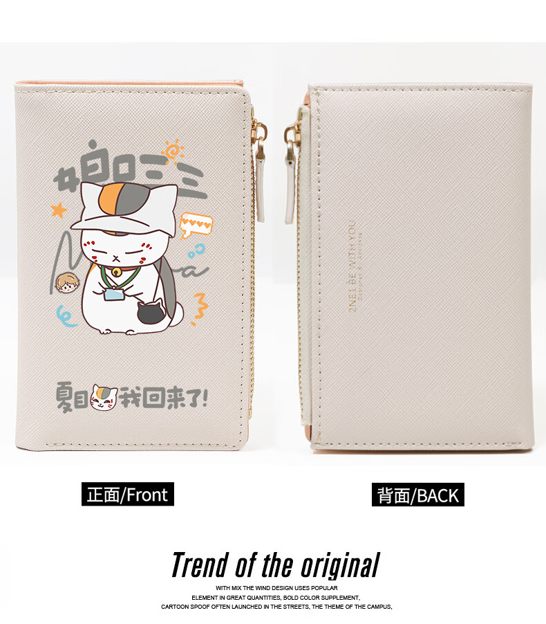 Flo Cat Natsume's Book of Friends Peripheral Mother's Mouth Sansan Cat Teacher Cute Cartoon Student Wallet Card Holder 2-in-1 Lightweight Beige Natsume I'm Back
