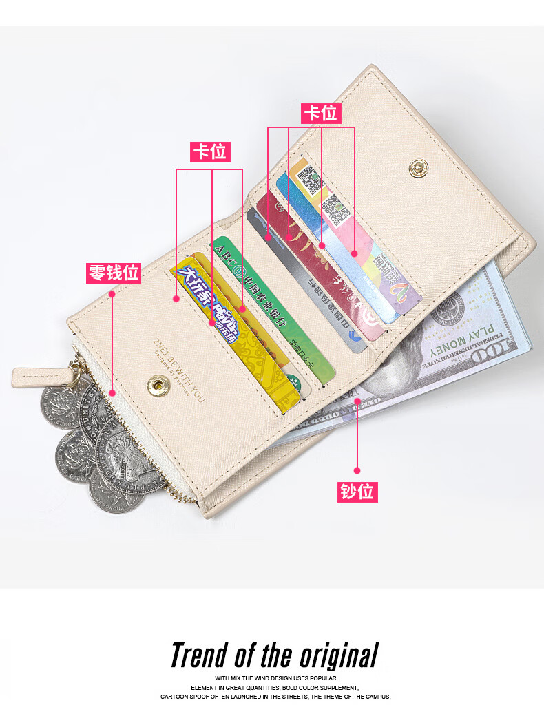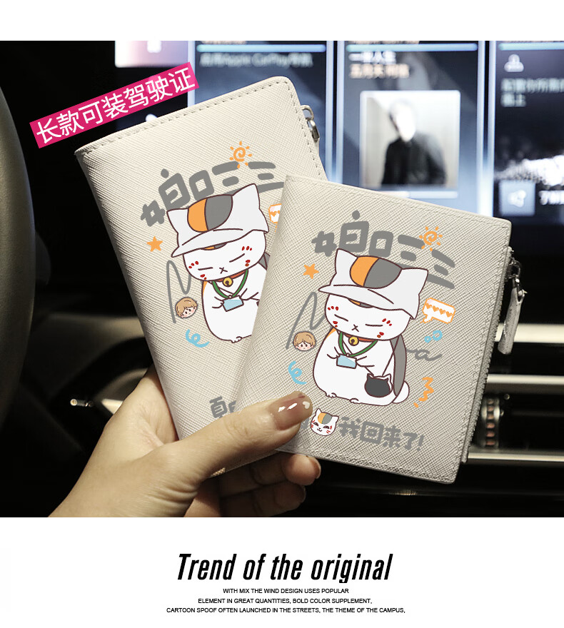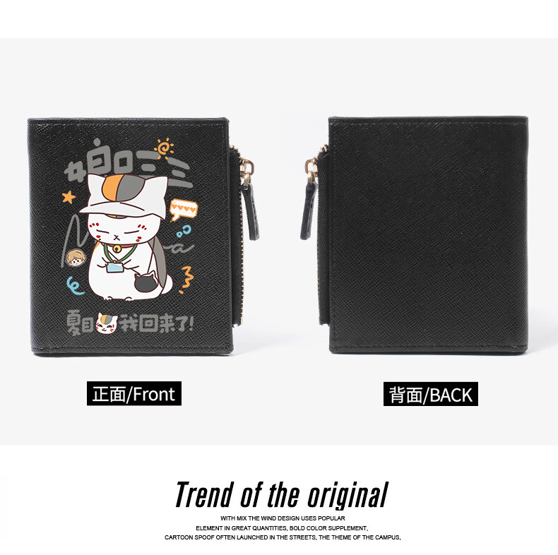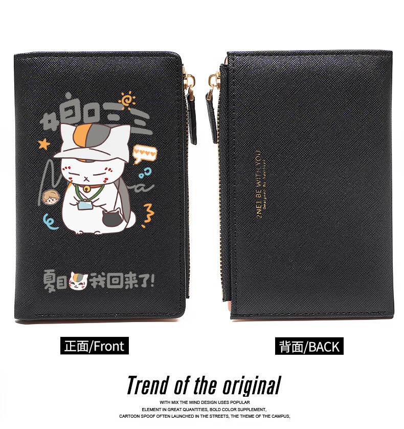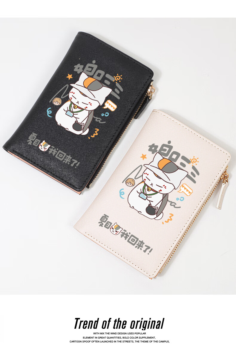 Flo Cat Natsume's Book of Friends Peripheral Mother's Mouth Sansan Cat Teacher Cute Cartoon Student Wallet Card Holder 2-in-1 Lightweight Beige Natsume I'm Back