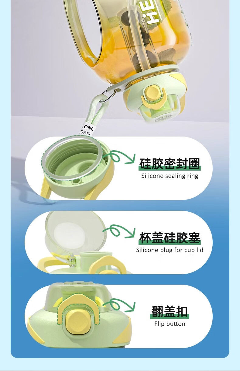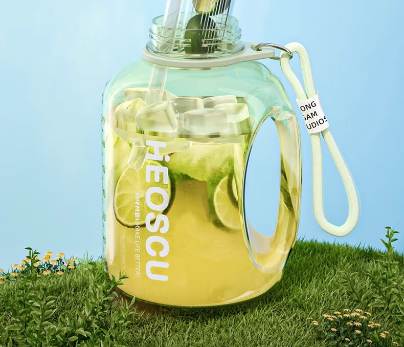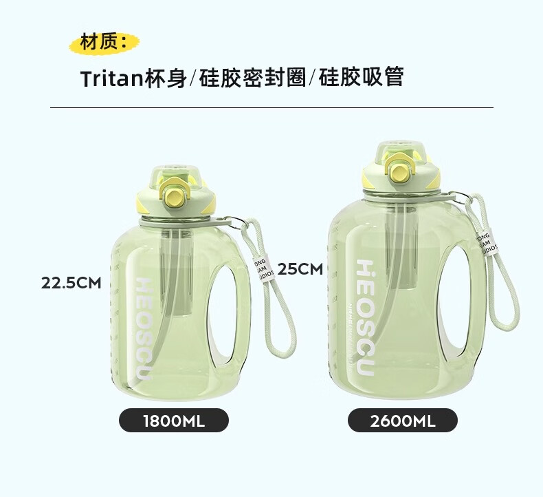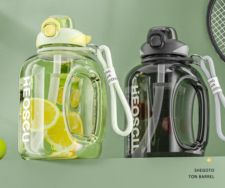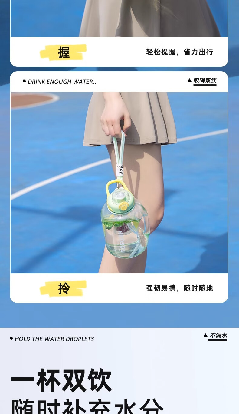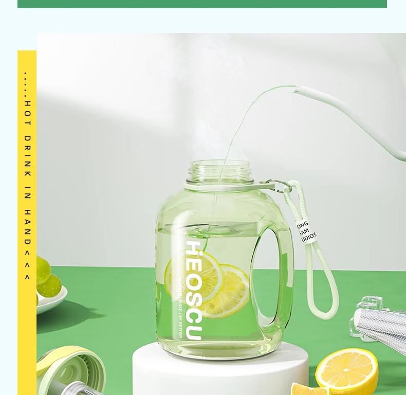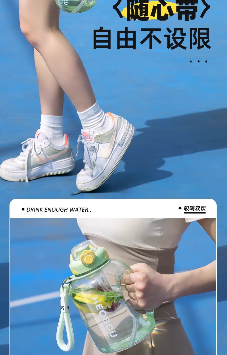 NRMEi Sports Water Cup Large Capacity Ton Bucket Tea Water Separating Dayton Cup Tritan Men's and Women's Summer High Temperature Resistant Sports Water Bottle Lime Green Double Drink + Tea Storage + Rope 1800ml