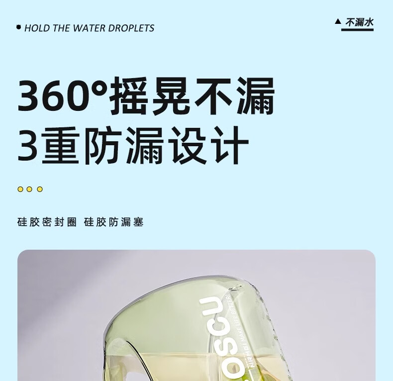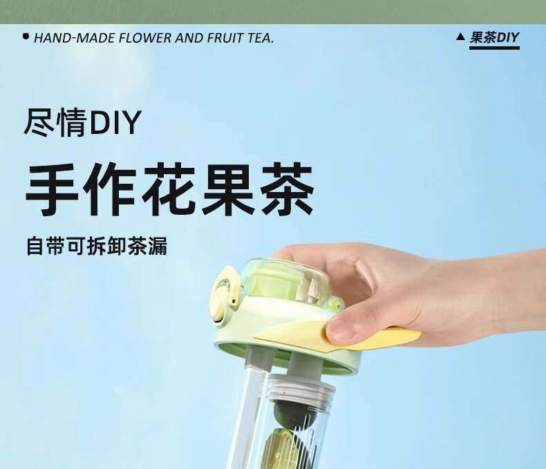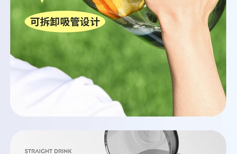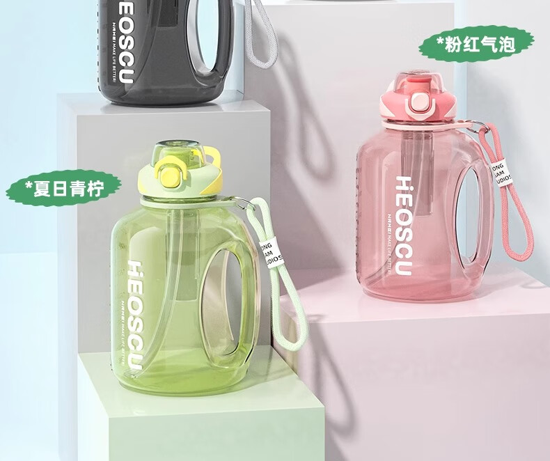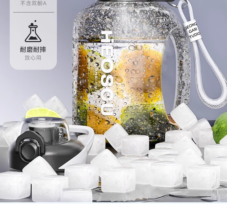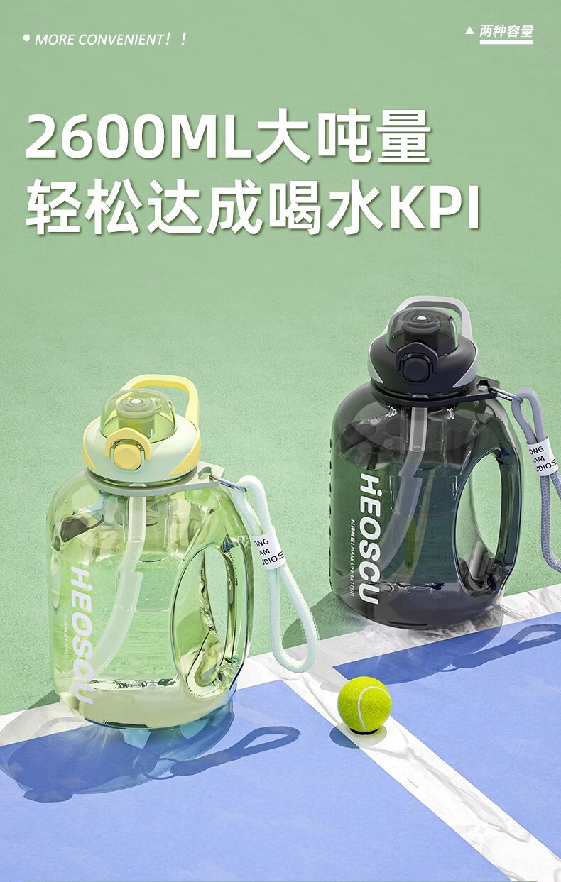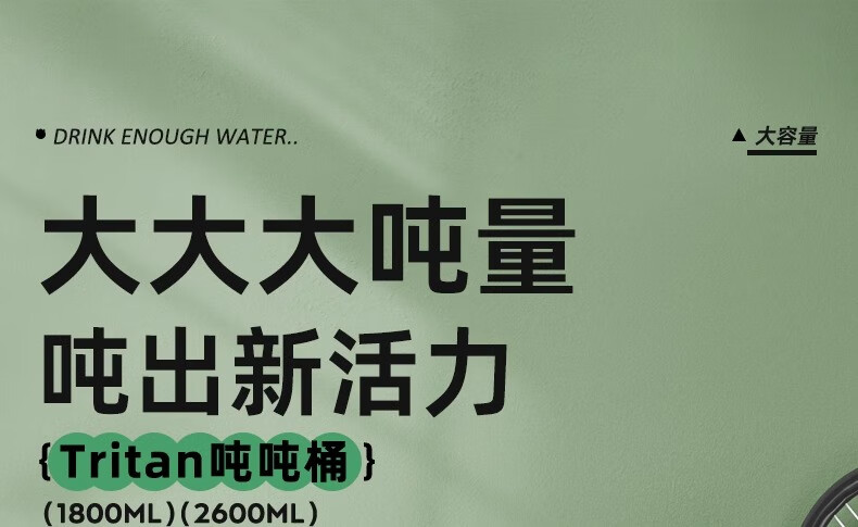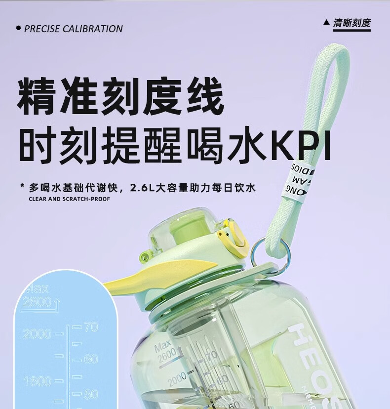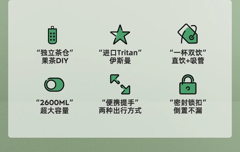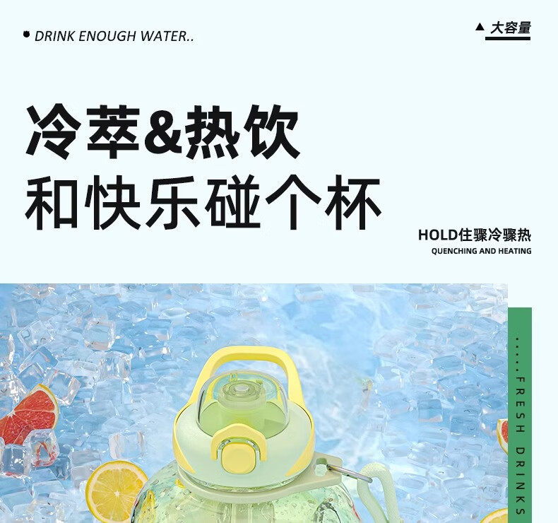 NRMEi Sports Water Cup Large Capacity Ton Bucket Tea Water Separating Dayton Cup Tritan Men's and Women's Summer High Temperature Resistant Sports Water Bottle Lime Green Double Drink + Tea Storage + Rope 1800ml