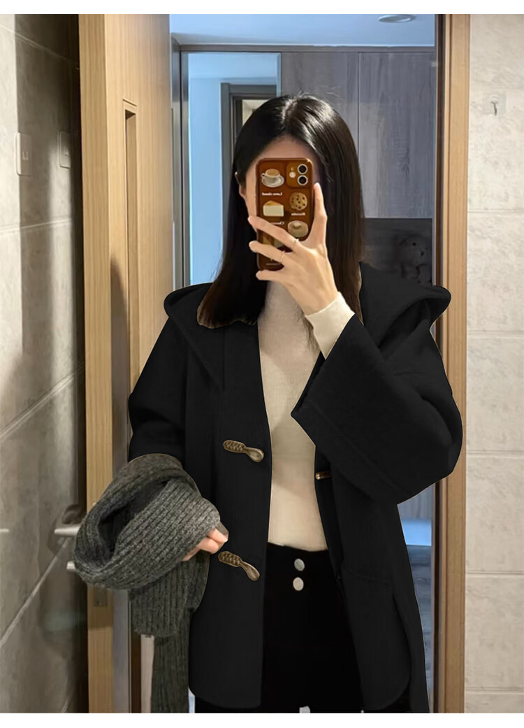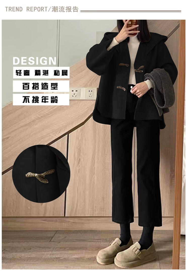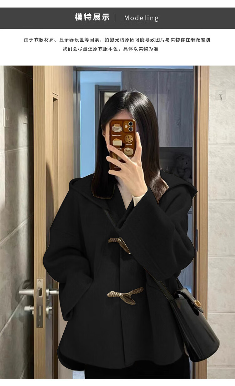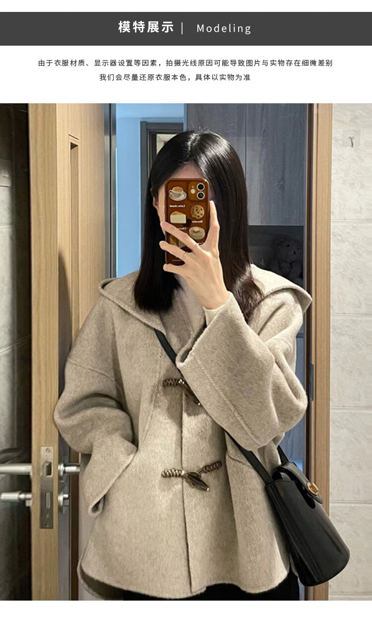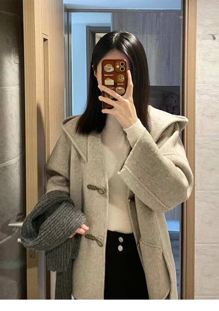Xia Yuyao short coat jacket for women 2026 spring and autumn new horn button Hepburn style small man hooded top women's Korean oatmeal color XL recommended 110-120 pounds