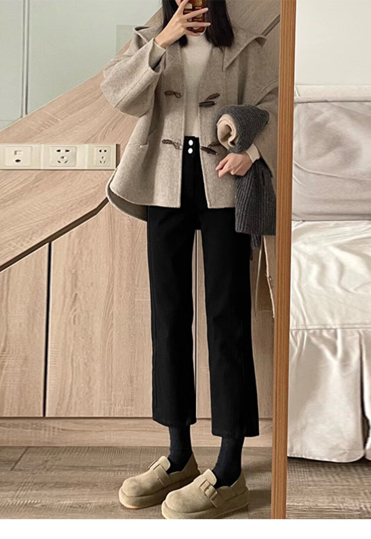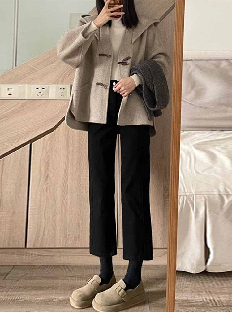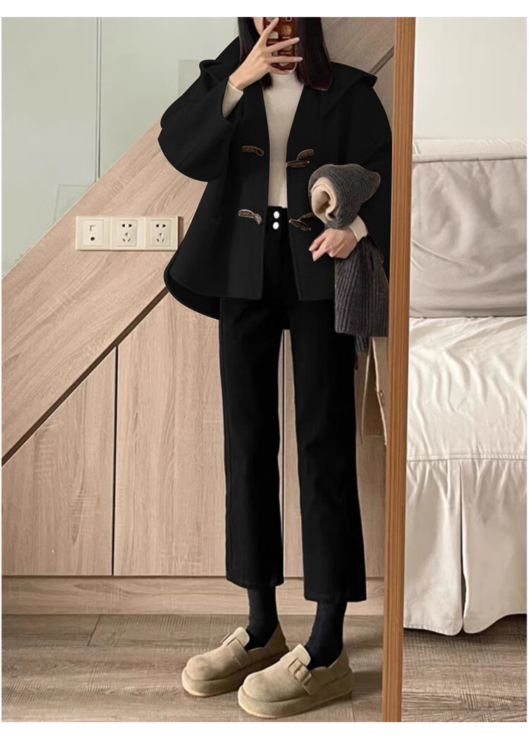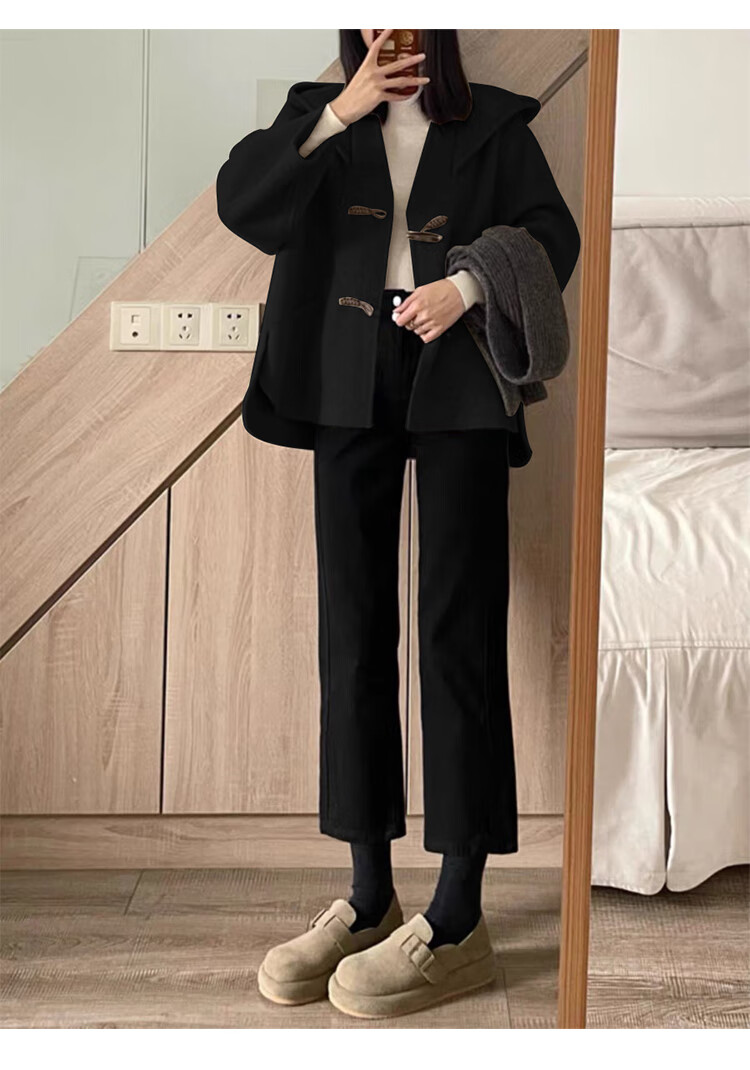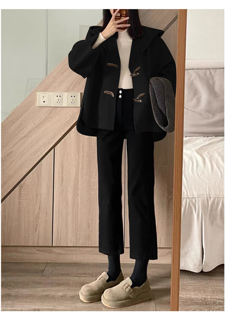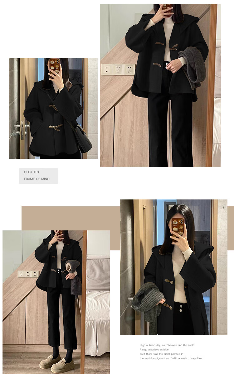 Xia Yuyao short coat jacket for women 2026 spring and autumn new horn button Hepburn style small man hooded top women's Korean oatmeal color XL recommended 110-120 pounds