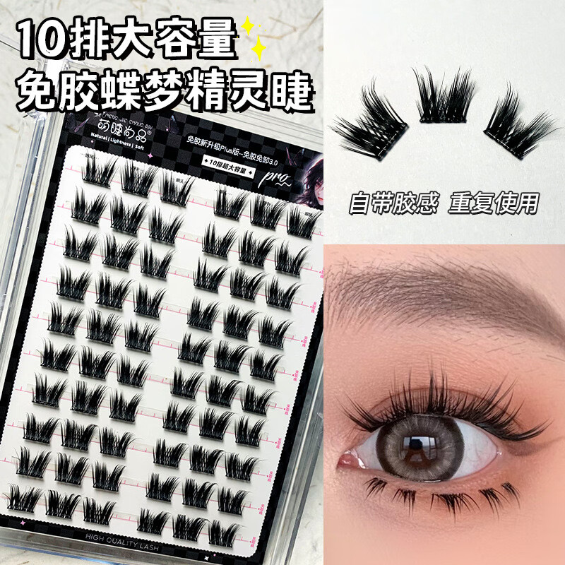 Cute Eyelash Shangpin Cute Eyelash Shangpin Lazy Large Capacity Self-adhesive Glue-free and Removal Trilogy False Eyelashes, Natural and New, Glue-free Ten Rows of Naughty Elf ST9