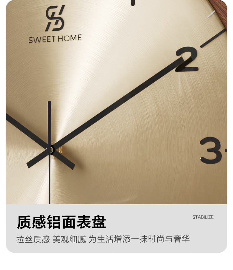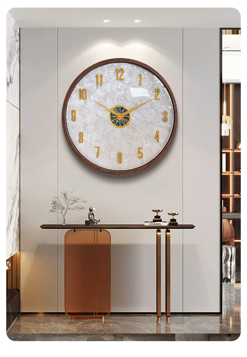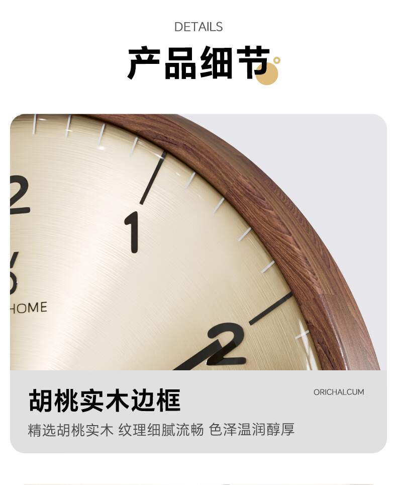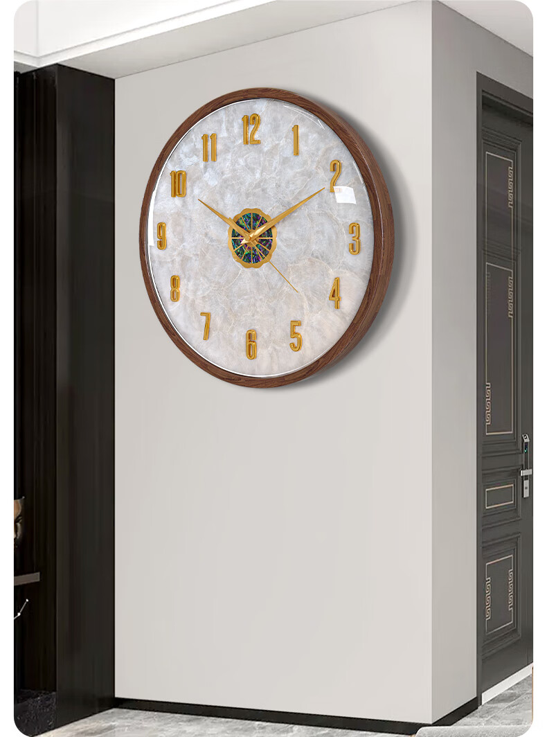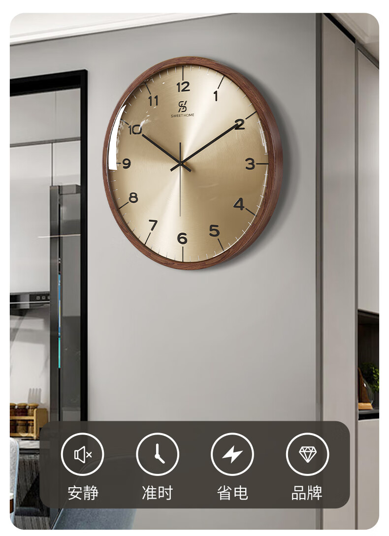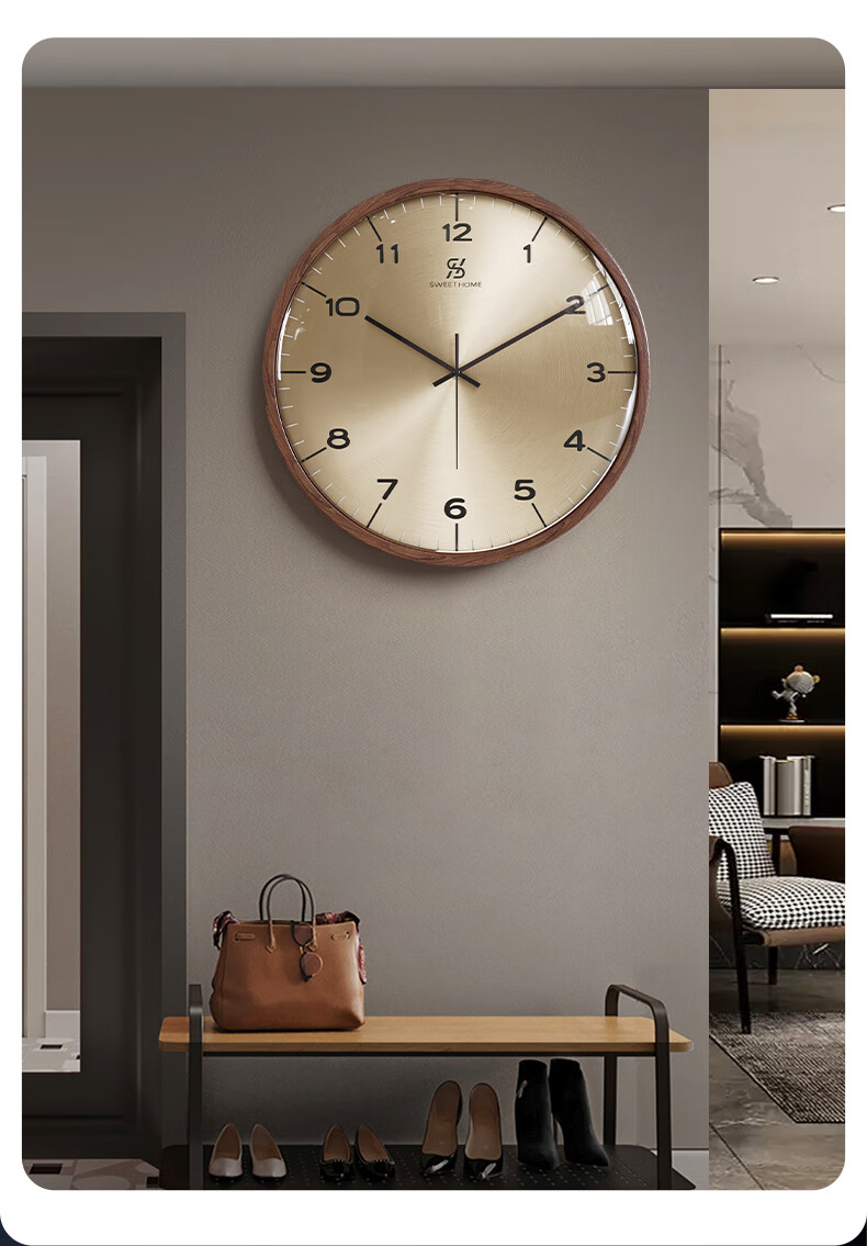 Copper Master 2025 new walnut solid wood wall clock light luxury high-end atmospheric wall clock living room restaurant home quartz clock 35CM-aluminum gold surface-silent movement