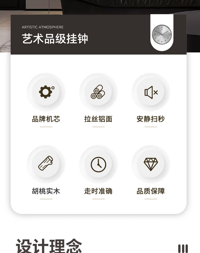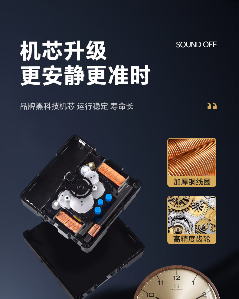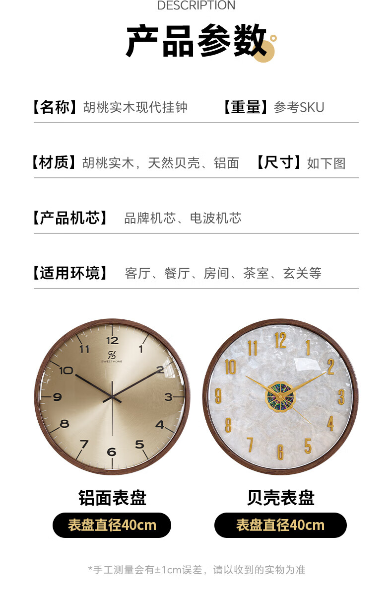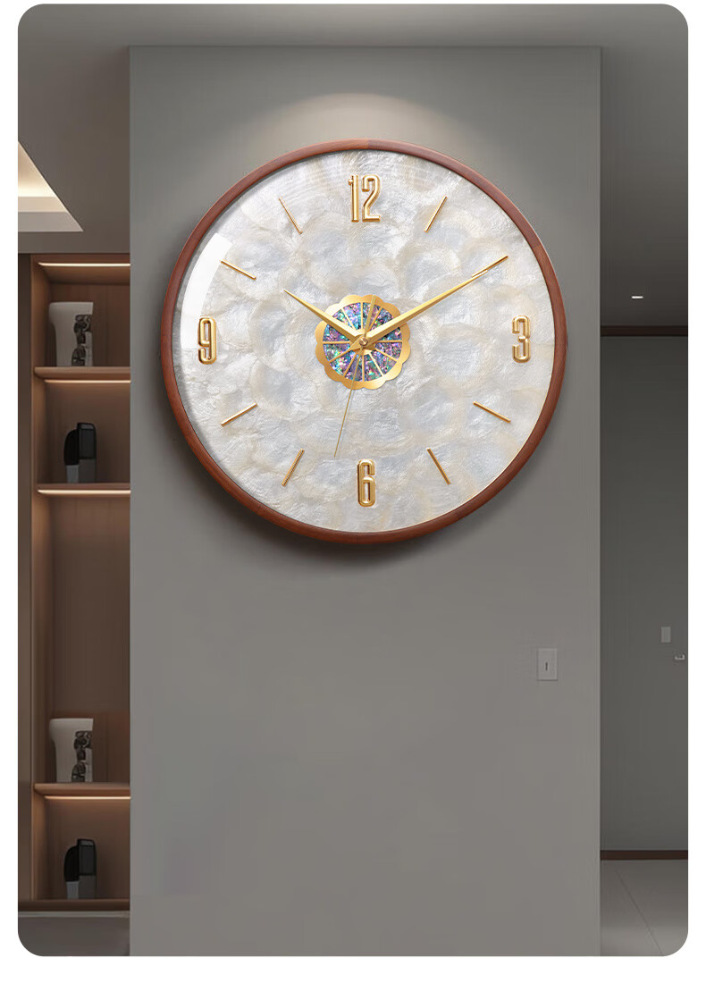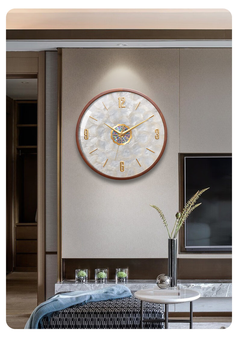 Copper Master 2025 new walnut solid wood wall clock light luxury high-end atmospheric wall clock living room restaurant home quartz clock 35CM-aluminum gold surface-silent movement