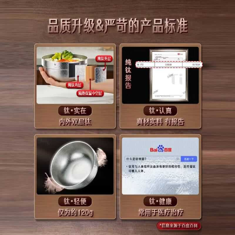 Sansi Steel pure titanium rice bowl, soup bowl, noodle bowl, eating small bowl, double-layered anti-scalding children's bowl 6-12 years old, household outdoor tableware, pure titanium double-layered bowl, 11.5cm
