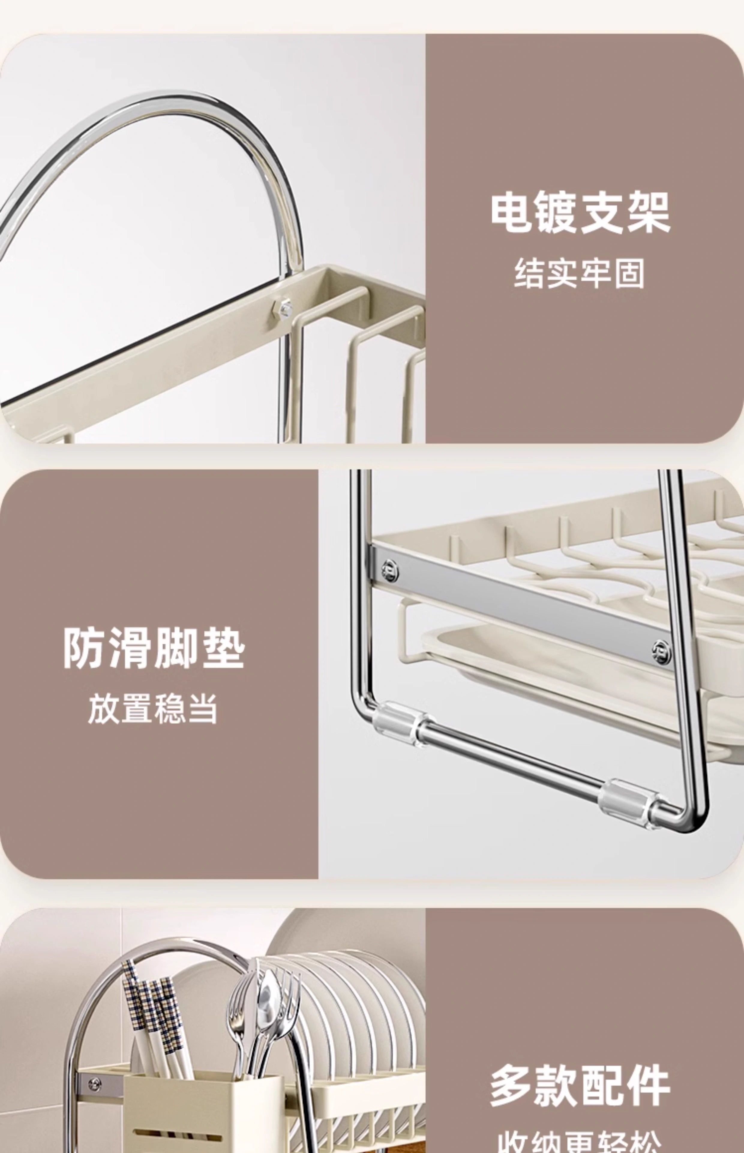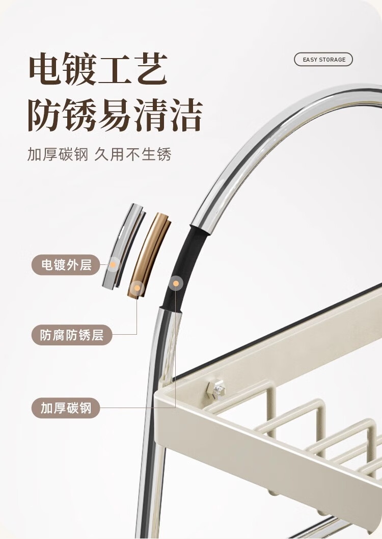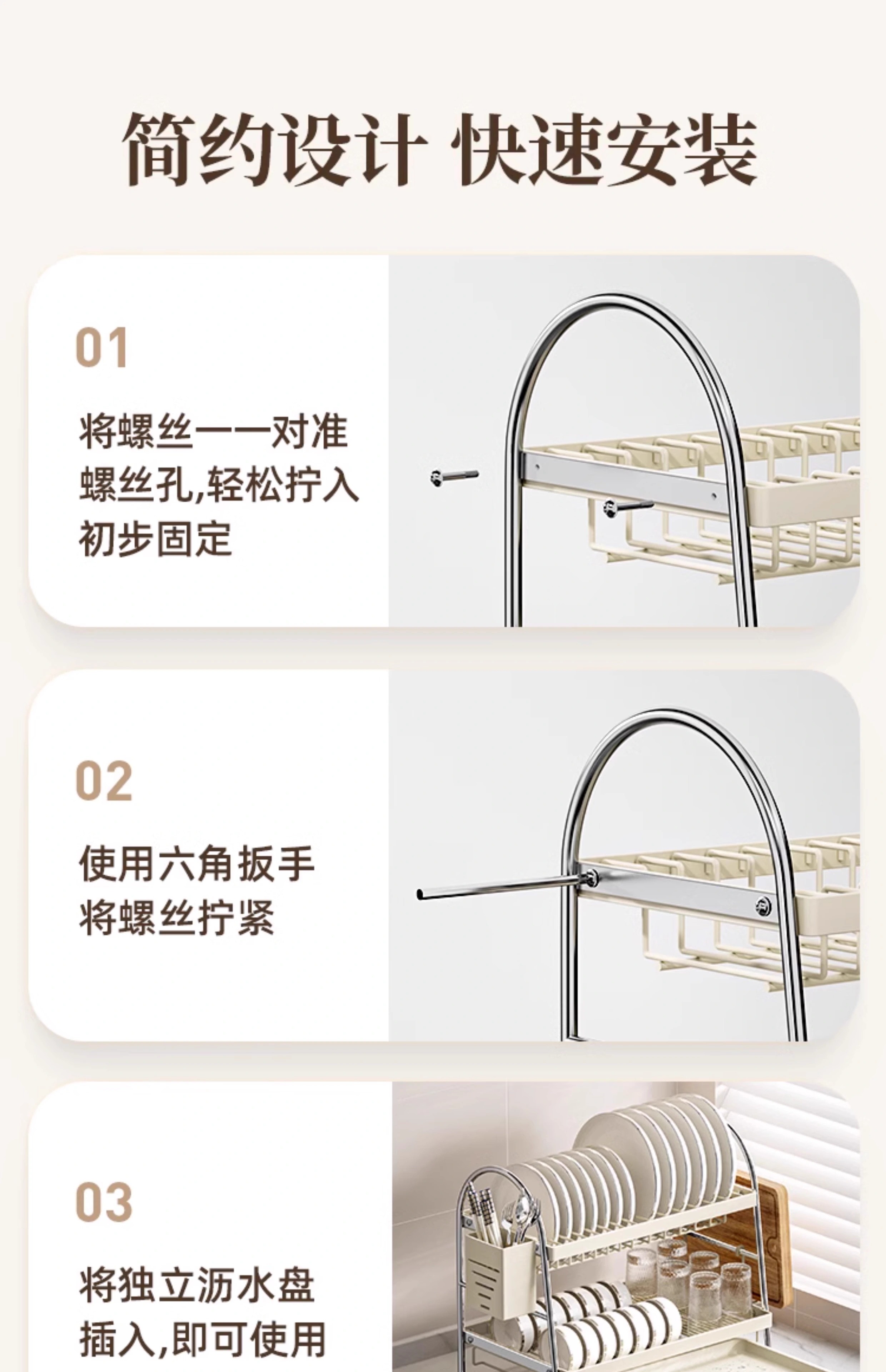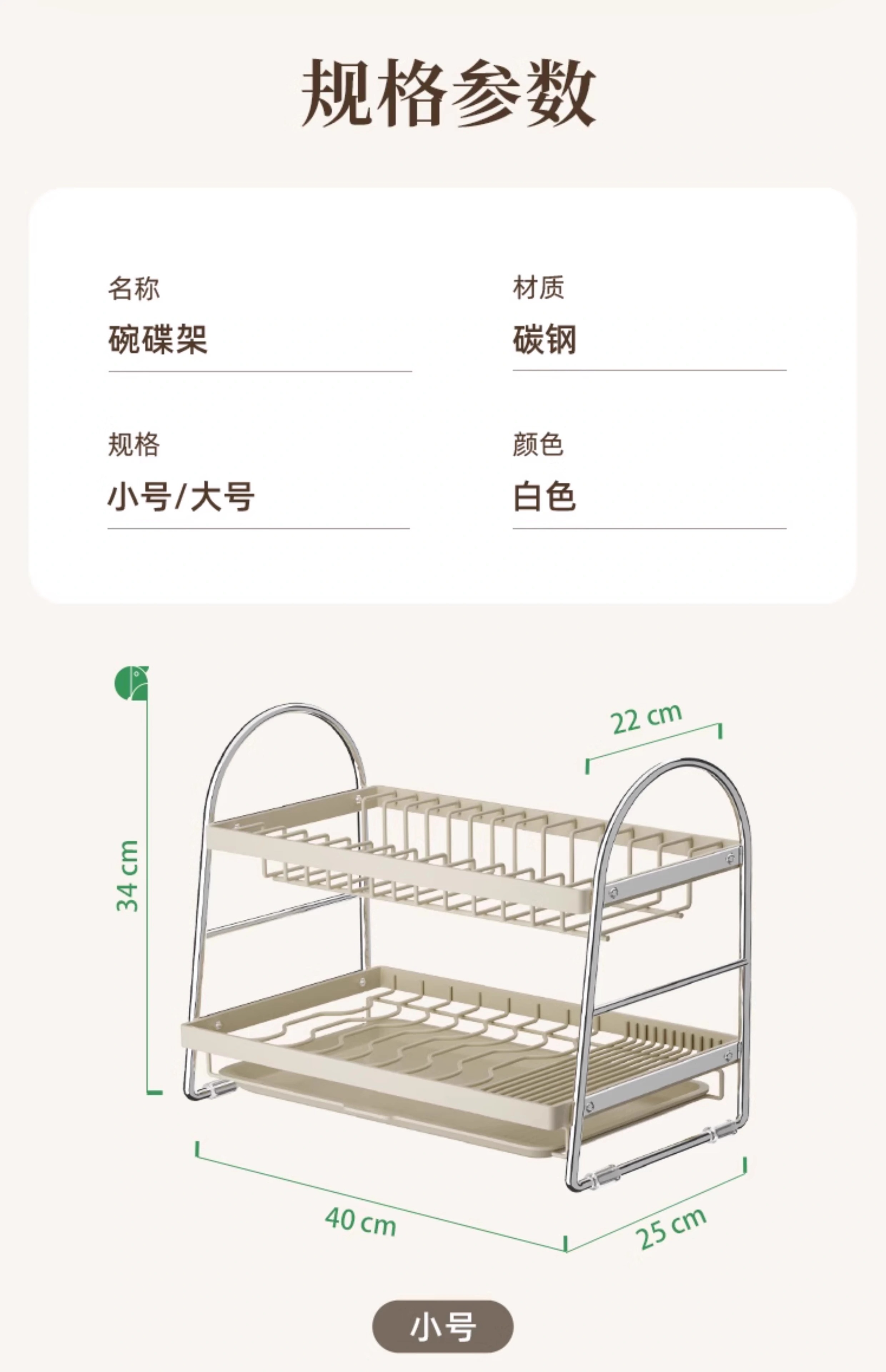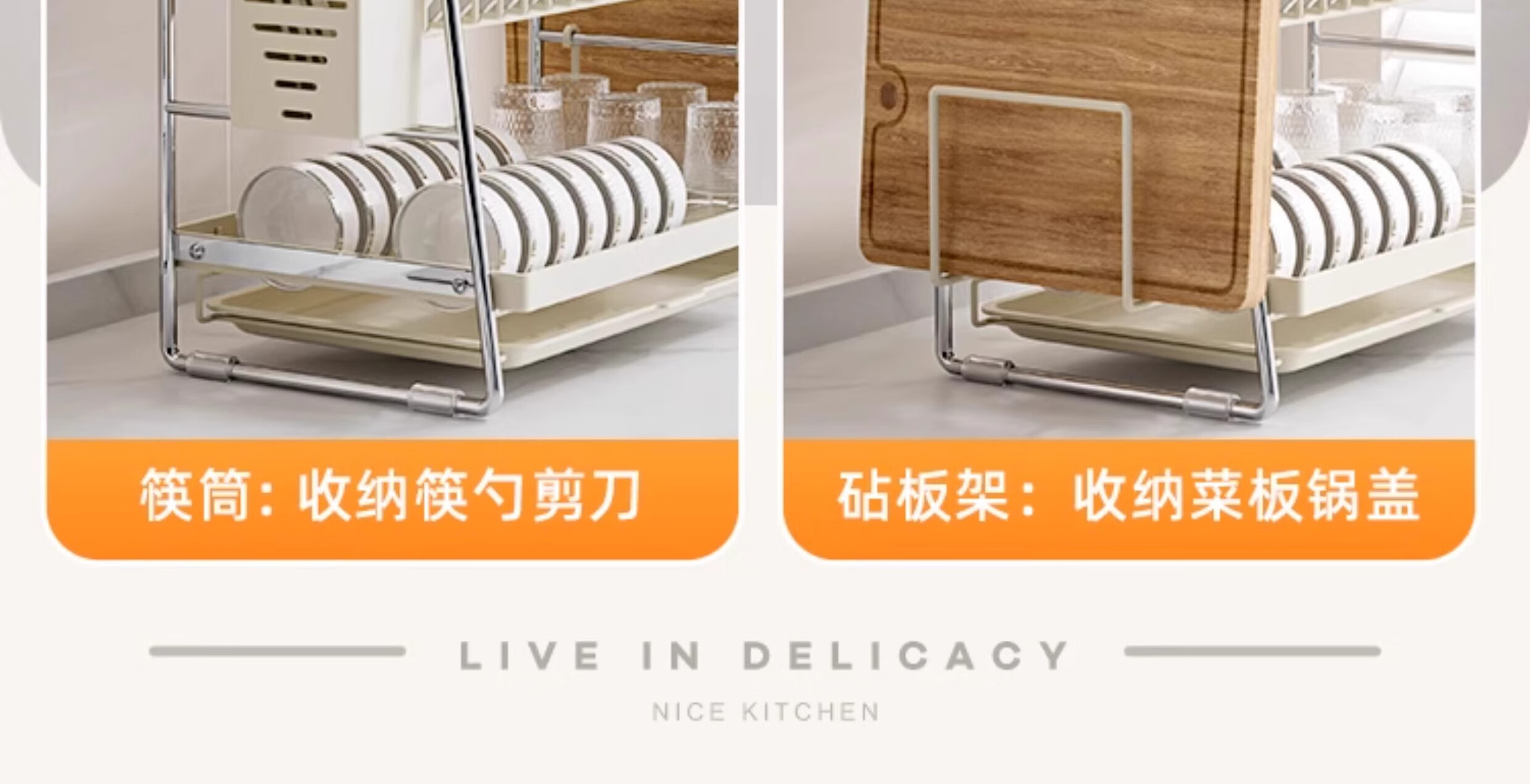 GNNDXX German bowl rack, dish storage rack, kitchen storage rack, multi-functional bowl counter top household dishes and chopsticks drain rack, milk white, double layer 40CM+chopstick tube+cutting board rack, solid carbon steel
