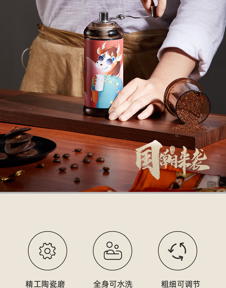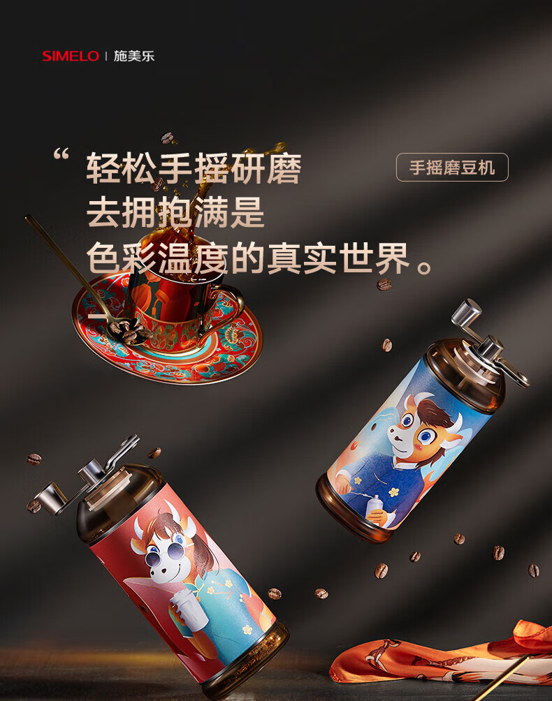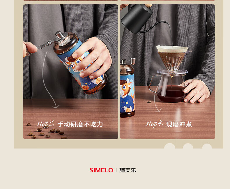 SIMELO hand-crank coffee bean grinder coffee bean grinder ceramic grinding core manual bean grinder Niu Zhuan Qian Kun fashionable model