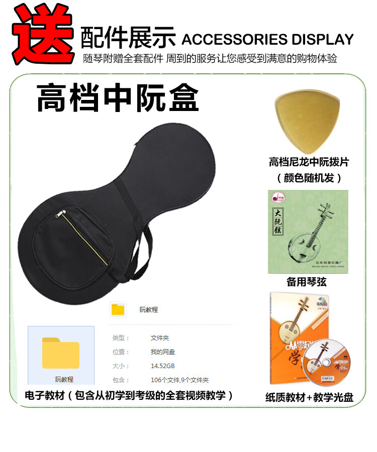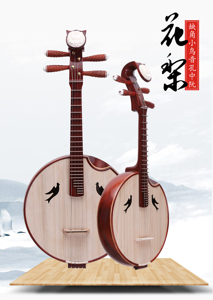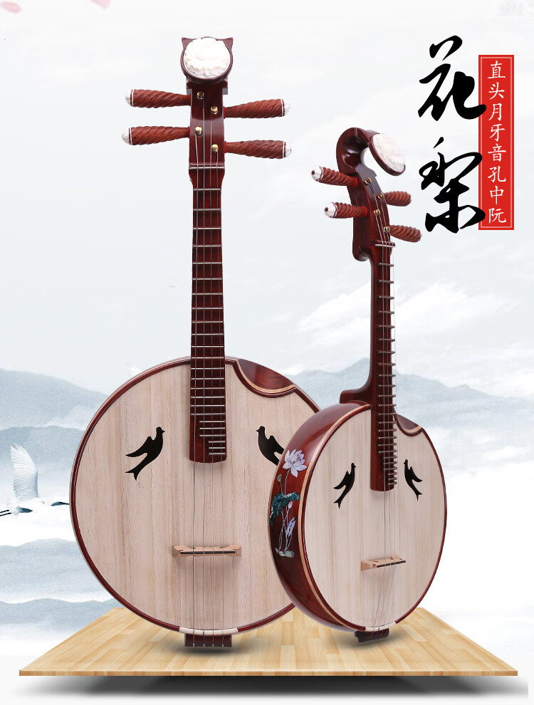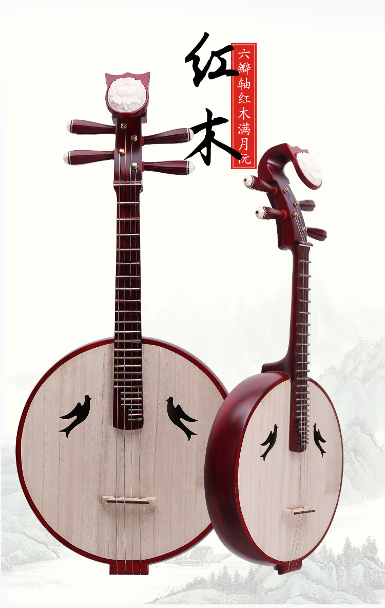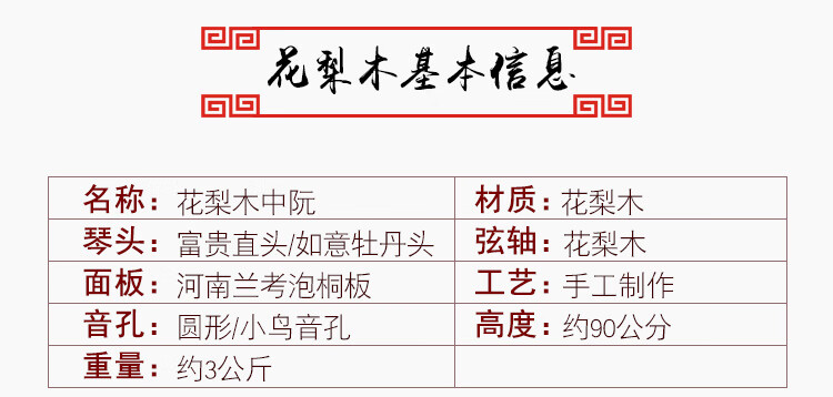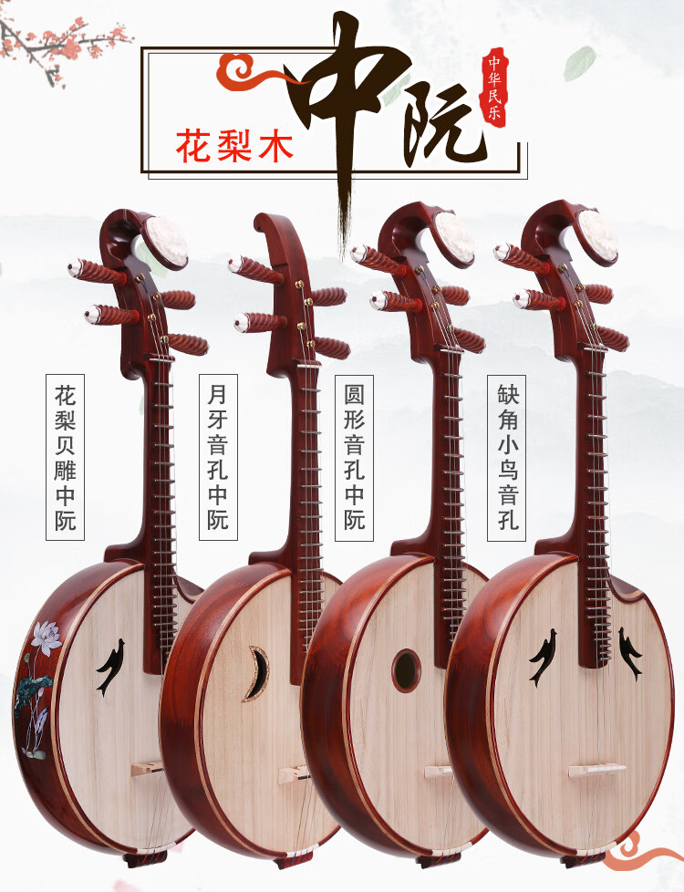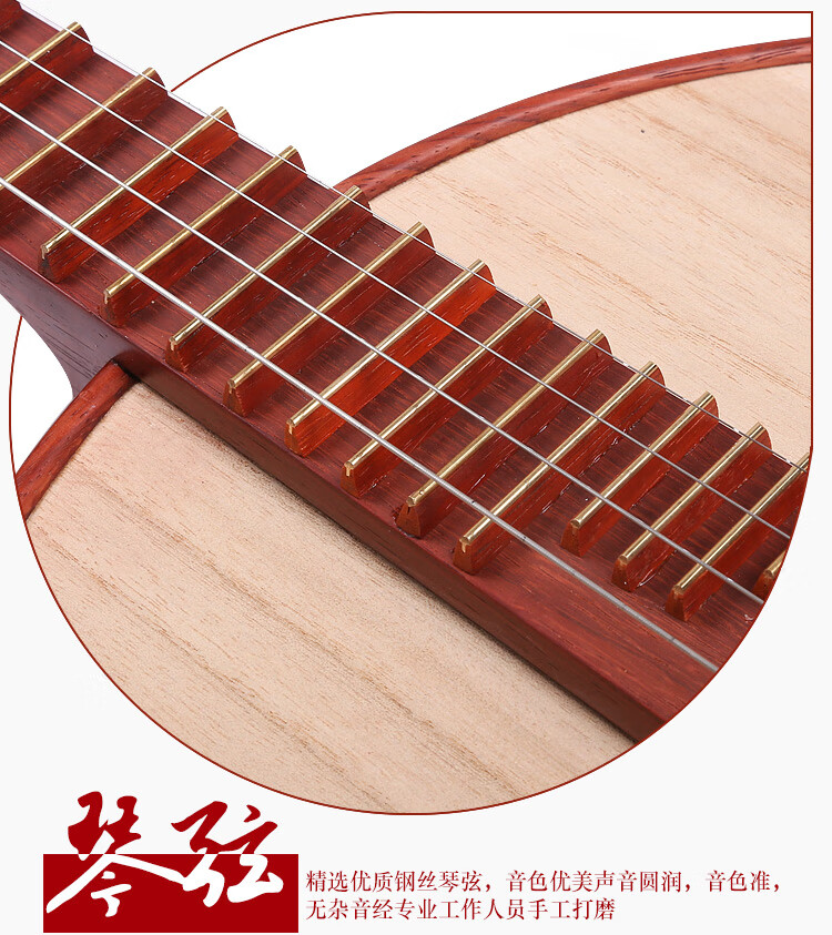 Folk music Zhongruan instrument, handmade mahogany rosewood Zhongruan instrument, beginner professional teaching half-degree musical instrument for large, medium and small children, Zhongruan--African rosewood overall straight head