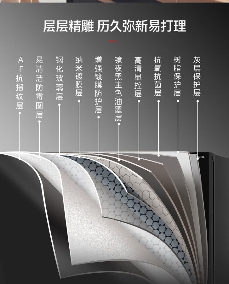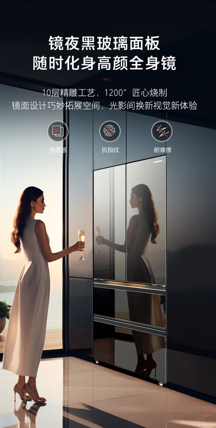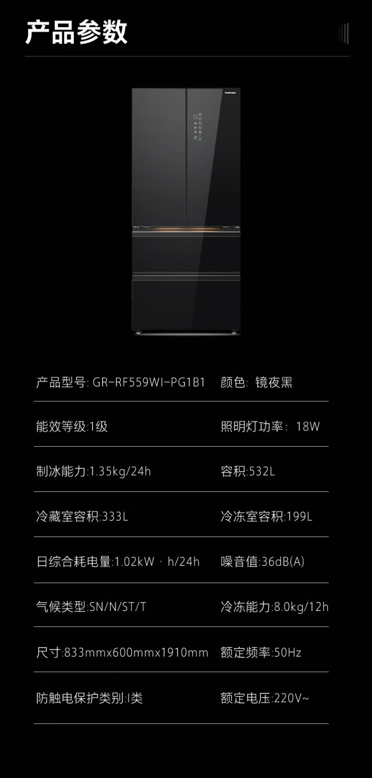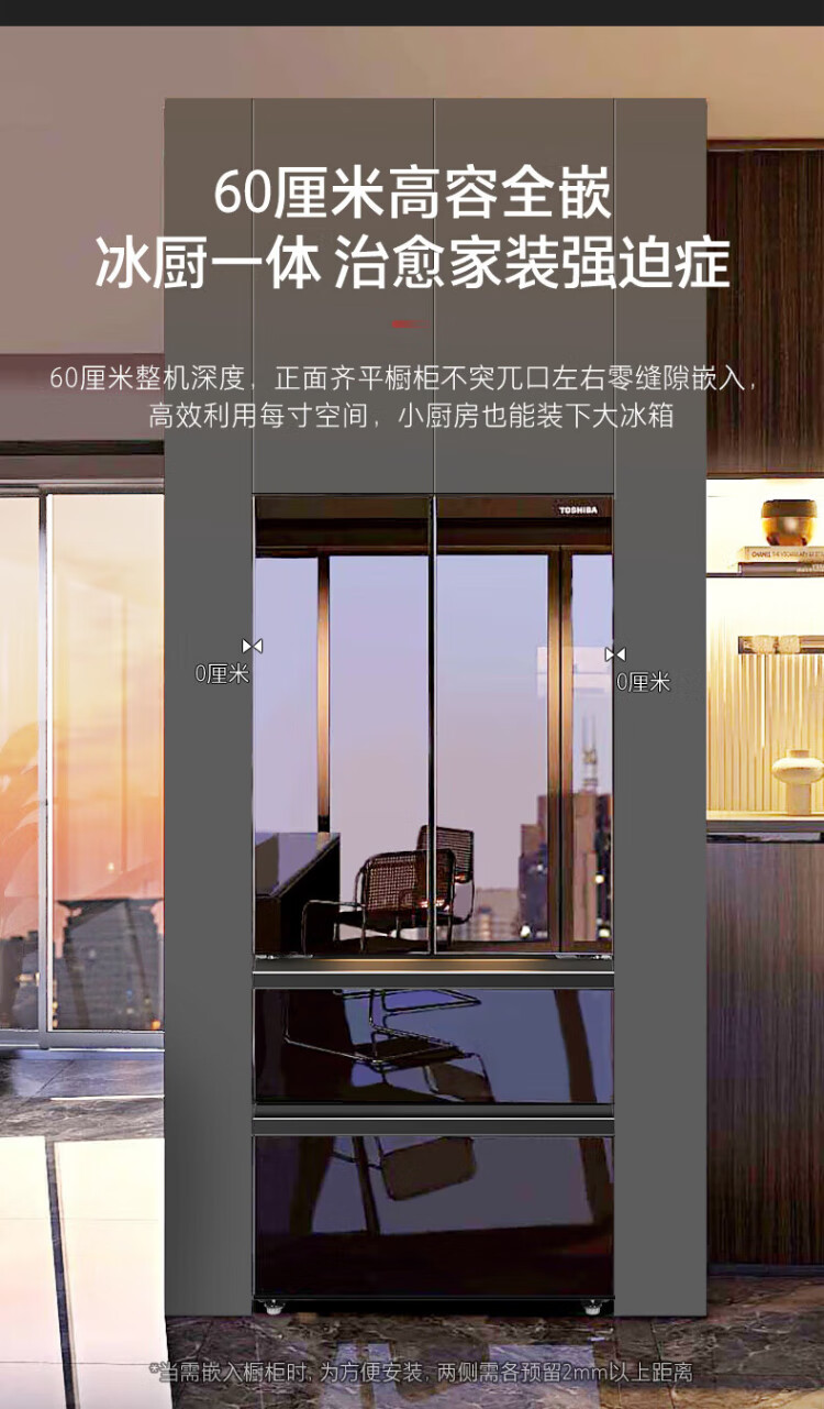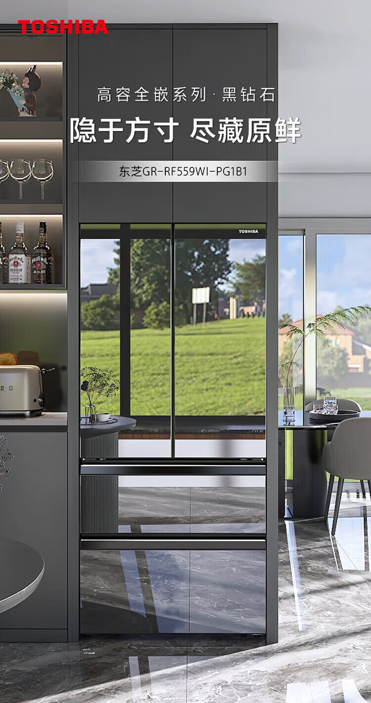 Toshiba 559 Black Diamond Household 532-liter French-style multi-door refrigerator High-capacity fully embedded ultra-thin zero-embedded large-capacity automatic ice making Frost-free inverter refrigerator first-class energy efficiency 559 Black Diamond Light luxury mirror night glass panel