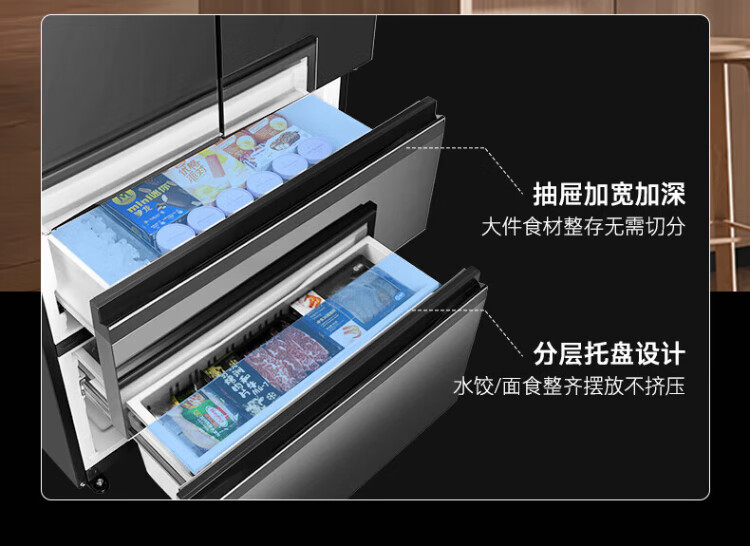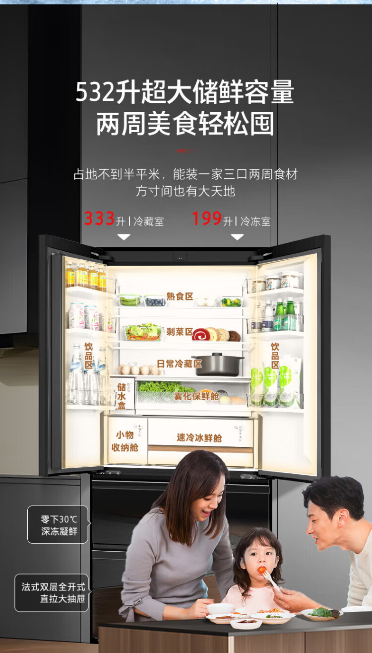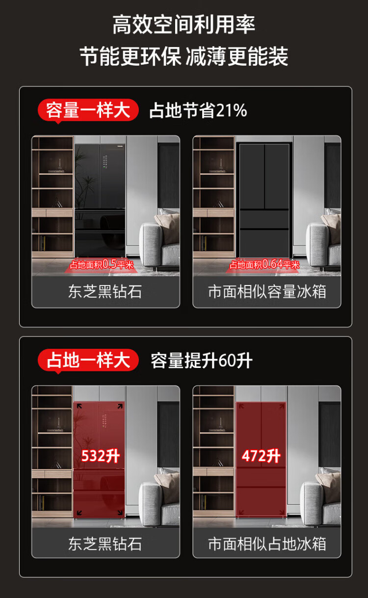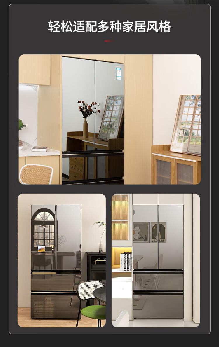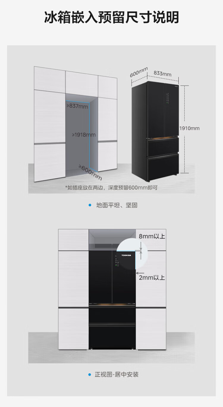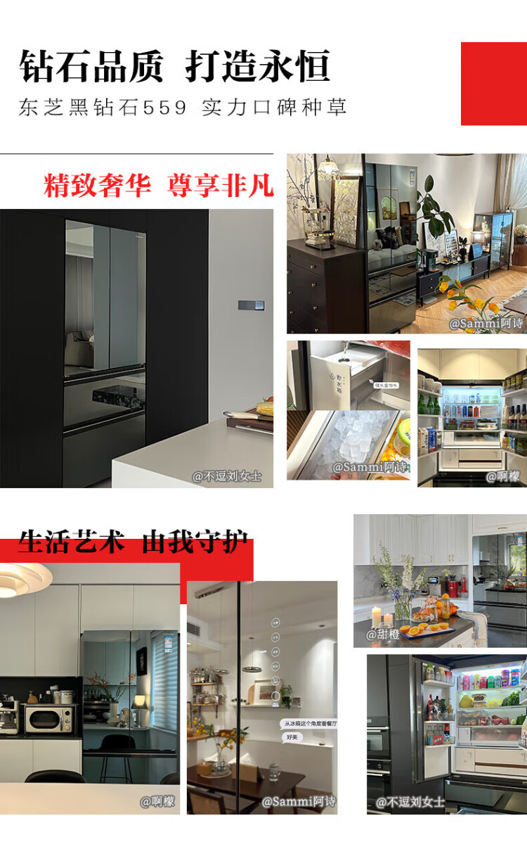 Toshiba 559 Black Diamond Household 532-liter French-style multi-door refrigerator High-capacity fully embedded ultra-thin zero-embedded large-capacity automatic ice making Frost-free inverter refrigerator first-class energy efficiency 559 Black Diamond Light luxury mirror night glass panel