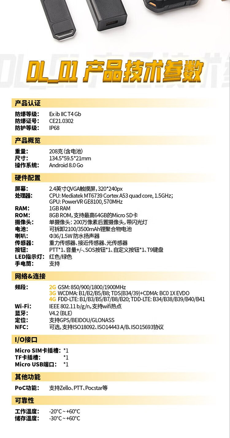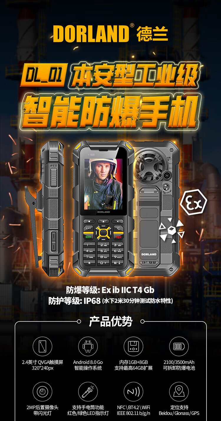 DORLAND intrinsically safe industrial-grade smart explosion-proof mobile phone DL_01 4G global communication 1+8G memory