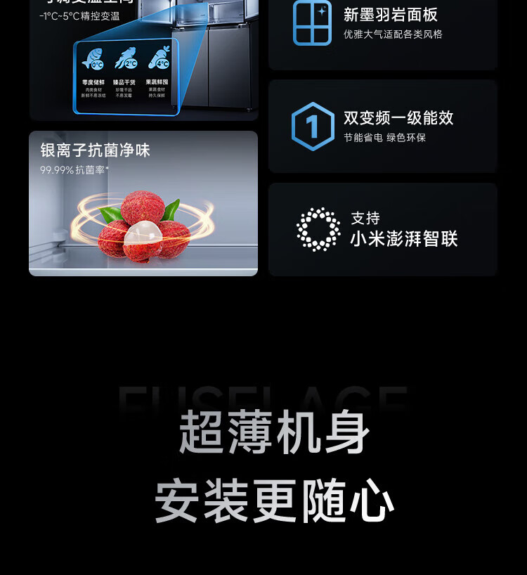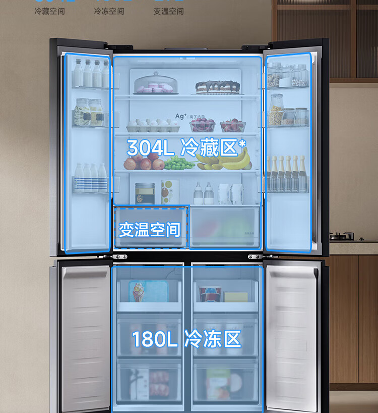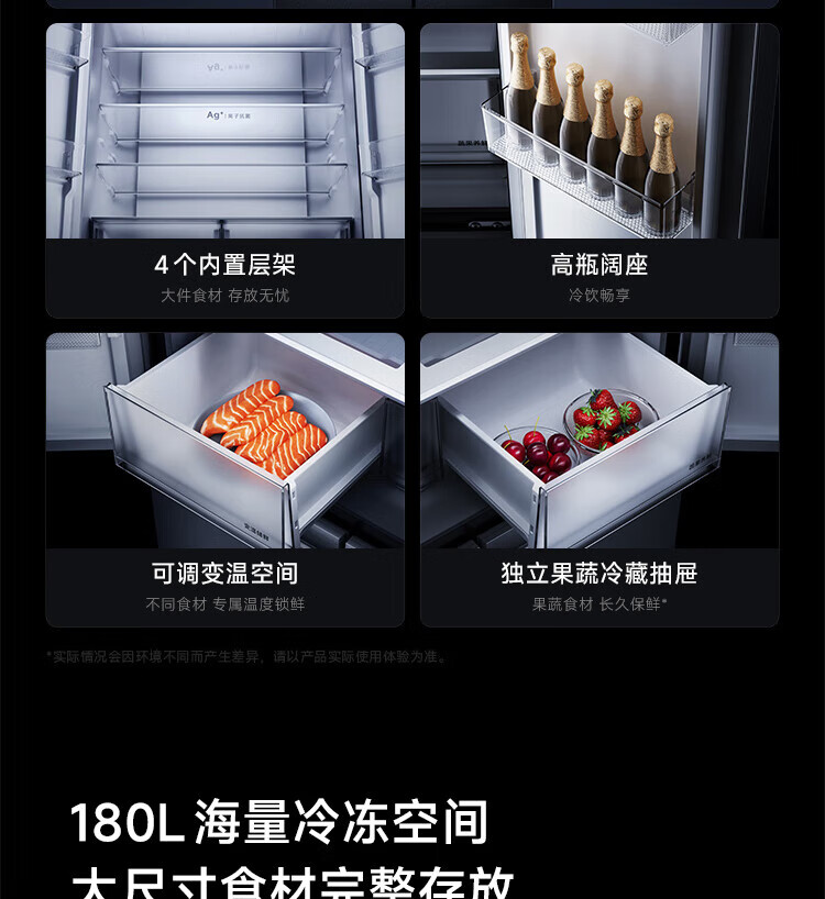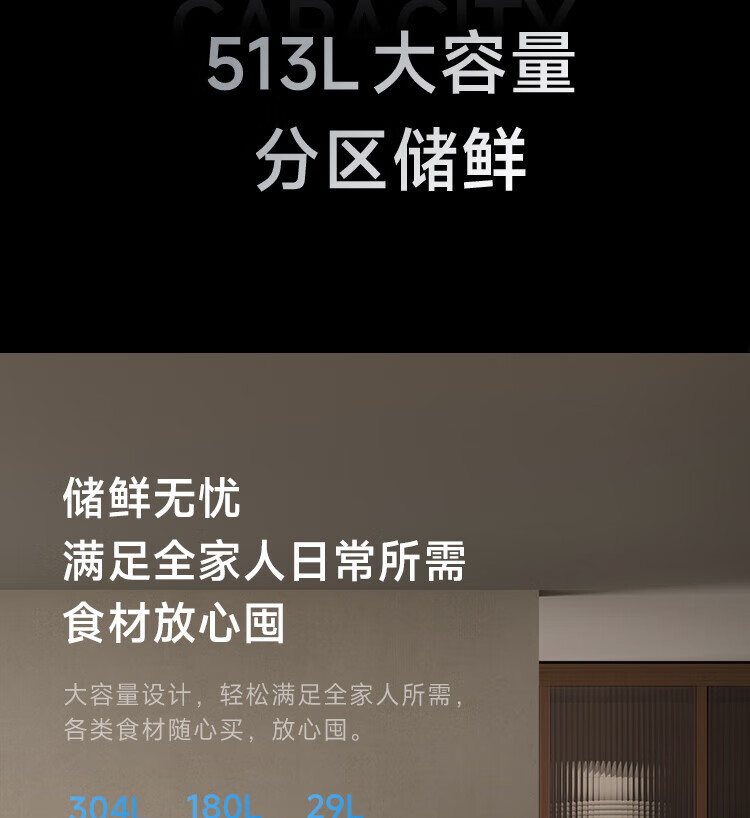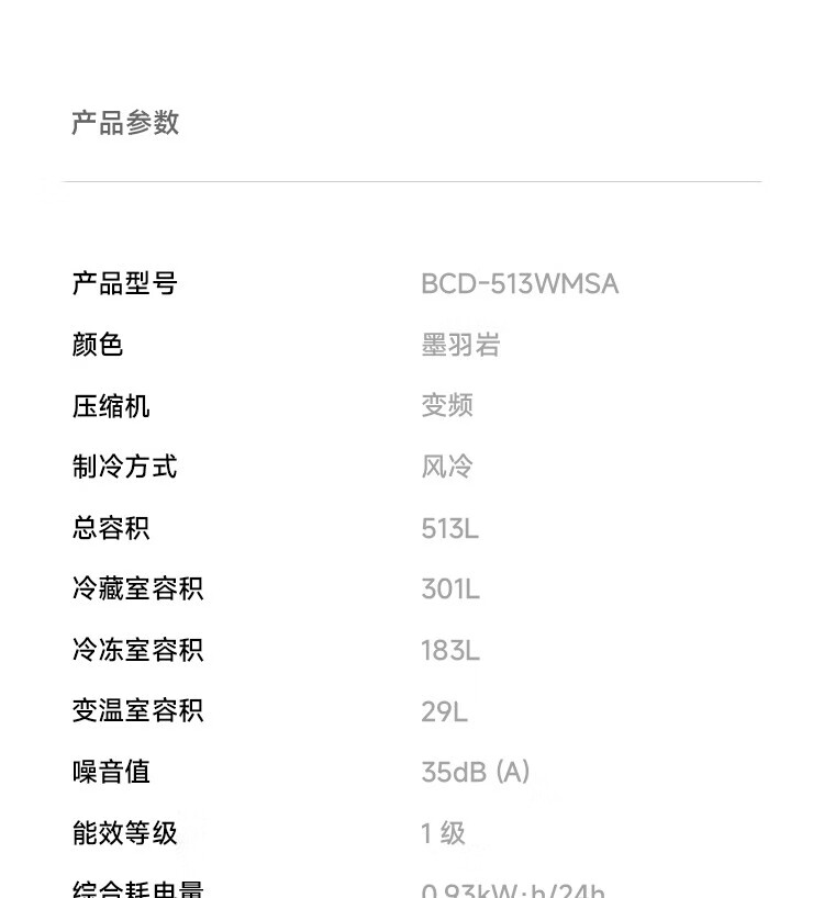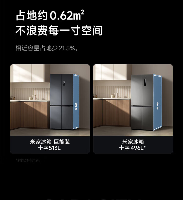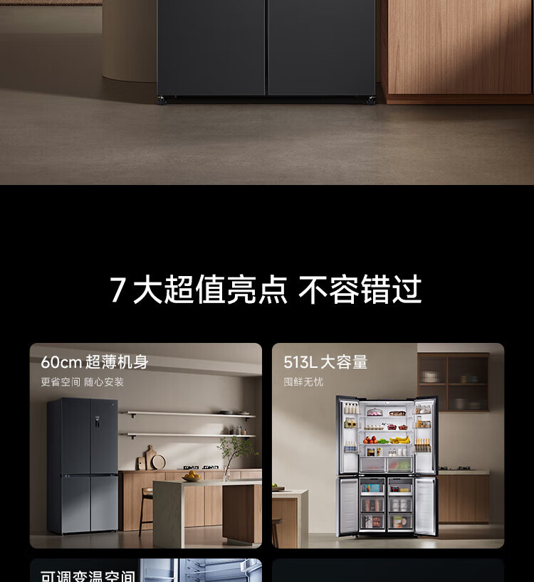 Mijia Xiaomi Juneng 513-liter refrigerator cross-section four-door ultra-thin large capacity Xiaomi Pampers Zhilian first-level energy efficiency BCD-513WMSA