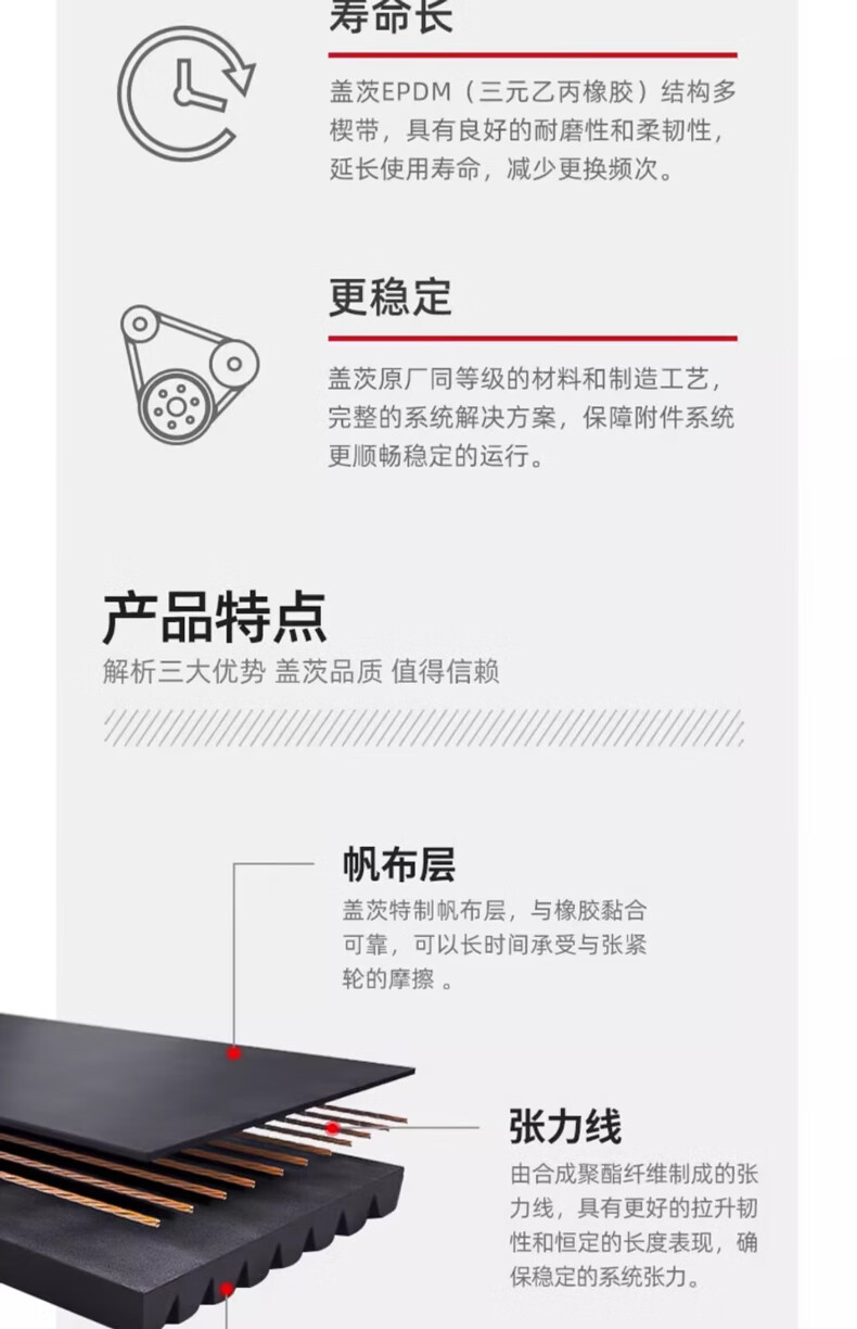Gates original generator belt, car engine accessory belt special for Mercedes-Benz C-Class E-Class GLC-Class 6PK1075