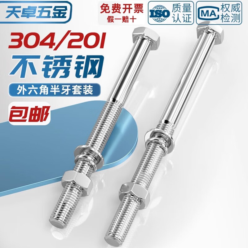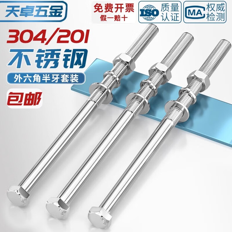 Tianzhuo Hardware M8M10M12M16 304 stainless steel half-thread external hexagonal screw nut set extended bolt wall screw M8*100 half-thread 5 sets