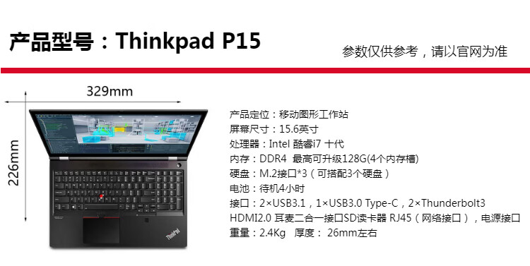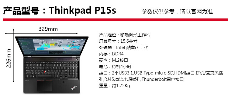 ThinkPad Lenovo P15V P15 P53 P52S I7 15.6-inch independent display 3D modeling mechanical design UG SW CAD editing drawing design mobile graphics workstation second-hand notebook 15 P15V-i7 eleventh generation 32G-1T independent display 4G
