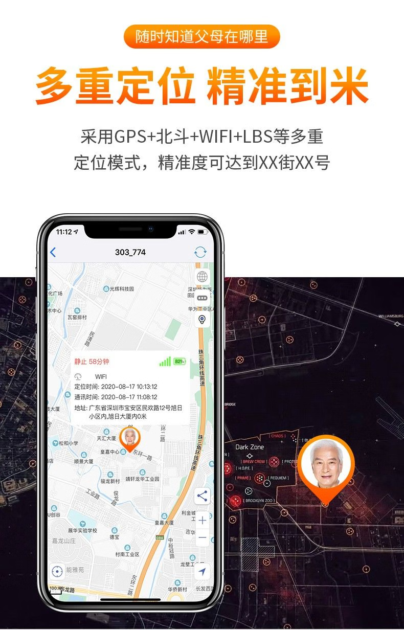 Fengwei elderly positioning tracker GPS children's micro anti-theft anti-lost artifact dementia elderly bracelet mobile phone 5G mini version eight-star positioning + super precise track + one-click help