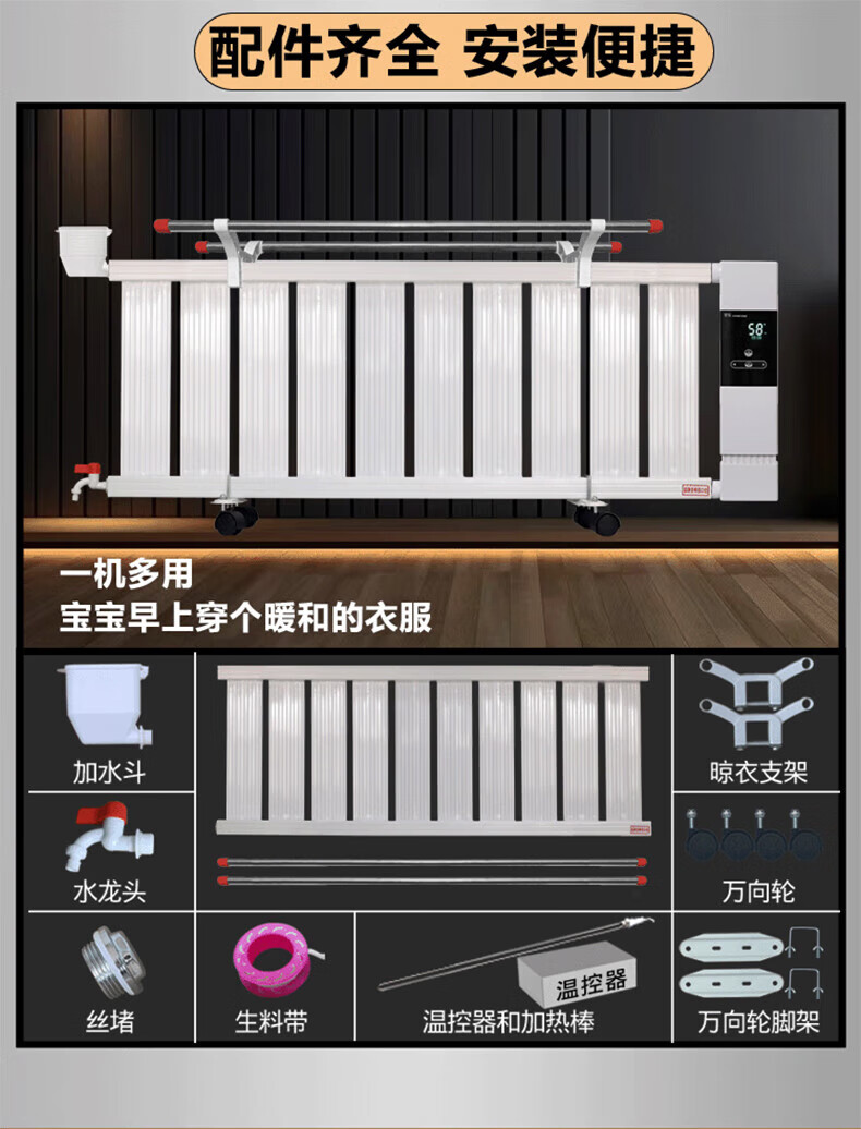 Line management home radiator household water and electricity intelligent water injection electric heater energy saving mobile heater indoor bathroom heater temperature control type knob 10 posts - see picture 2 for details