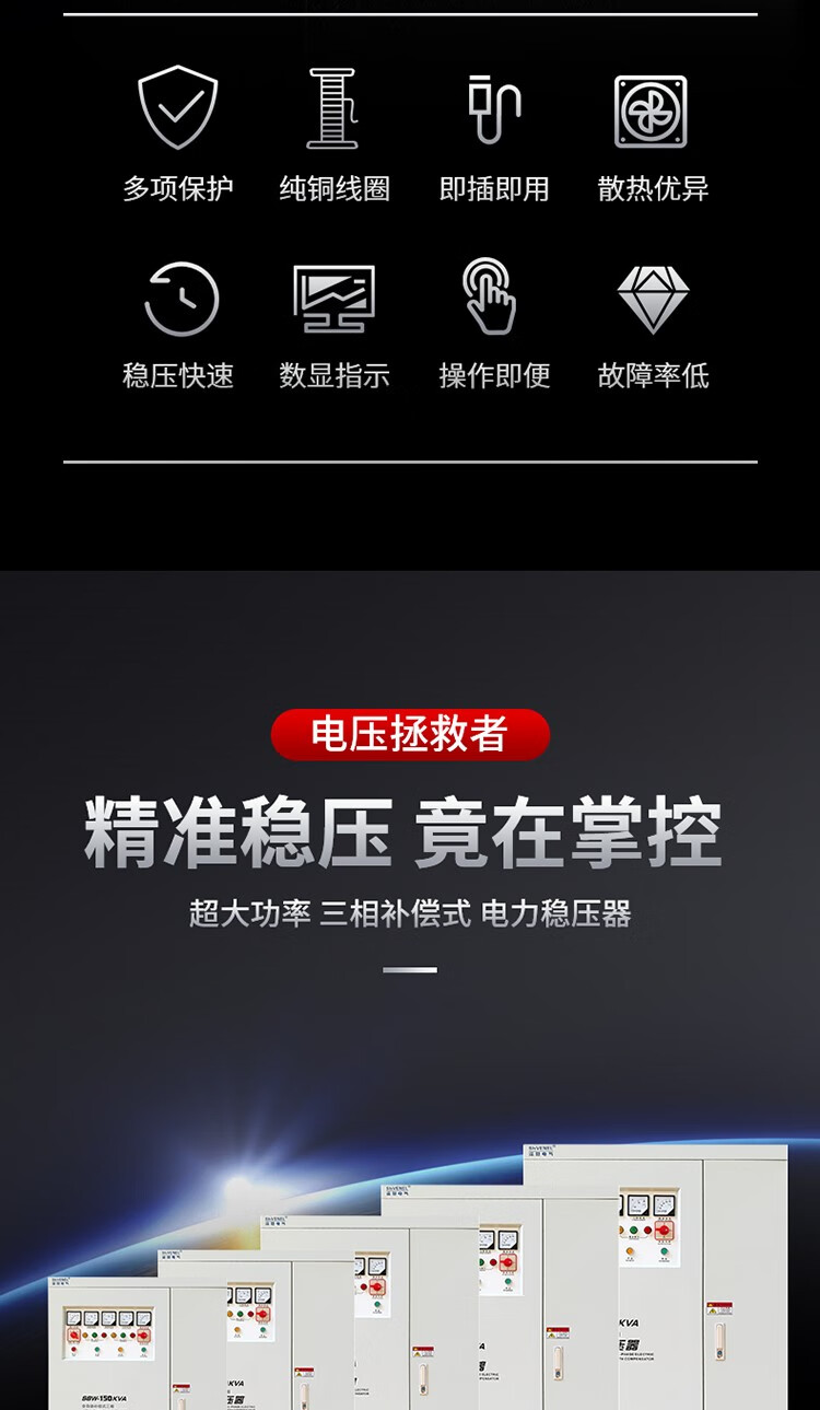 Shenzhen Guodian Investment voltage stabilizer three-phase 380v fully automatic 100kw tunnel high-power power booster 500600kw industrial use SBW-100KVA