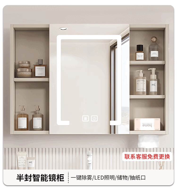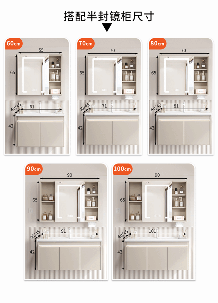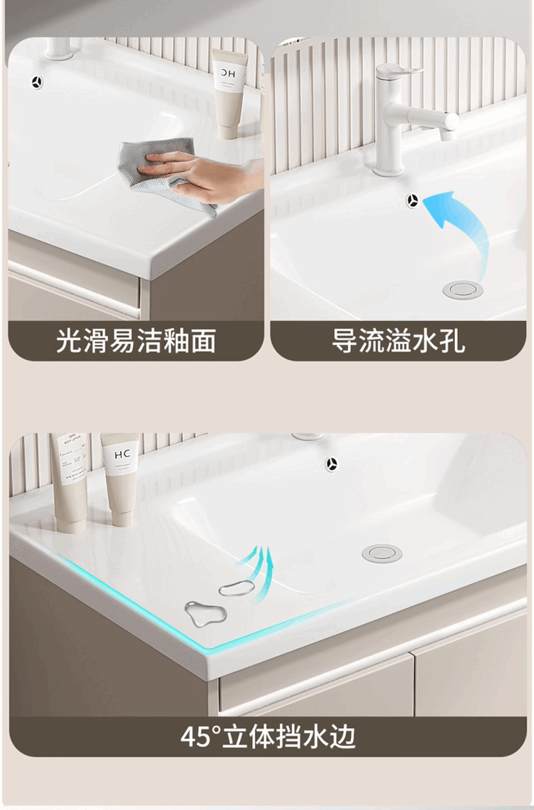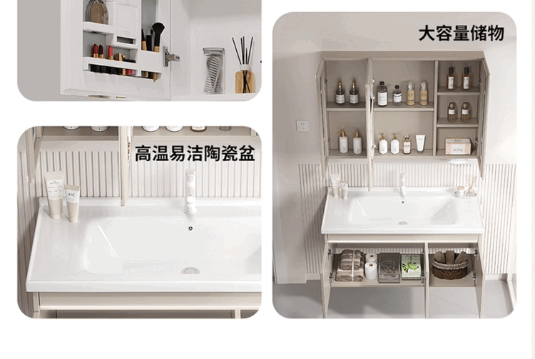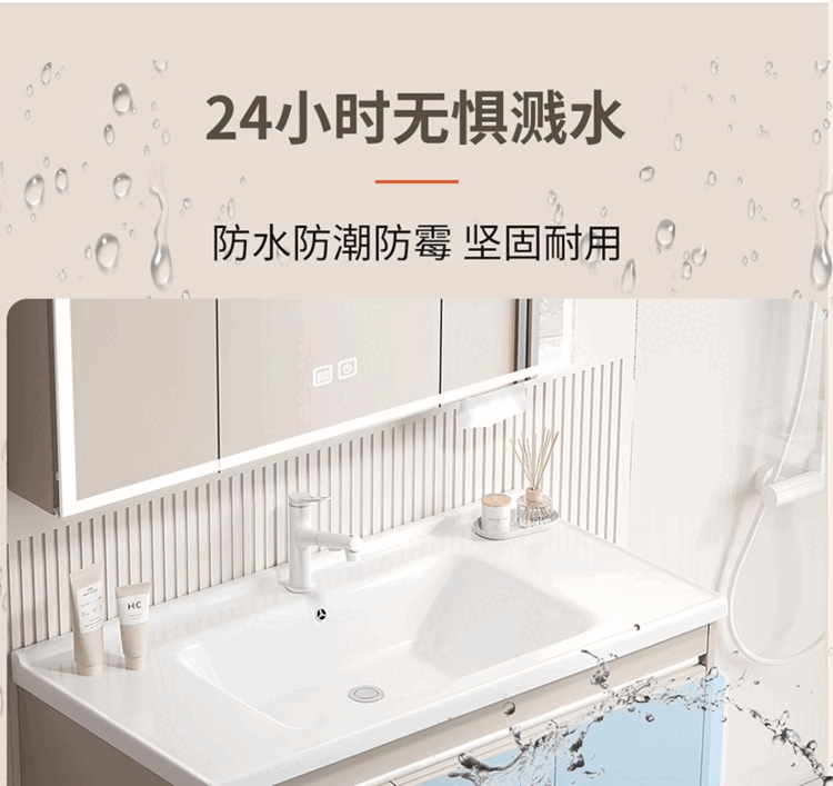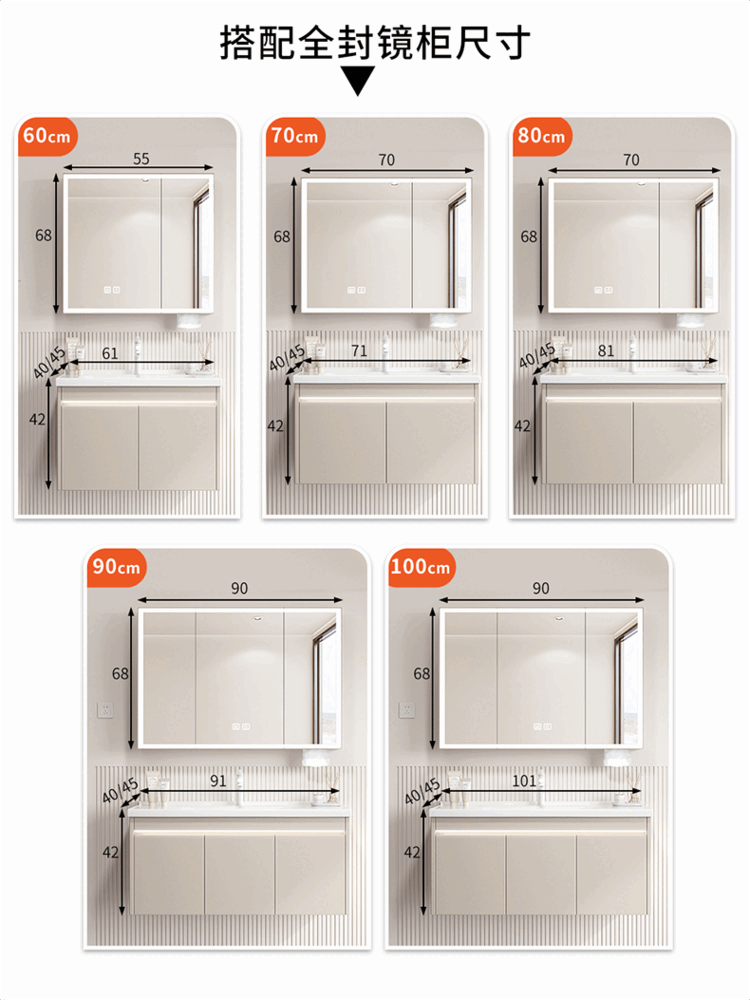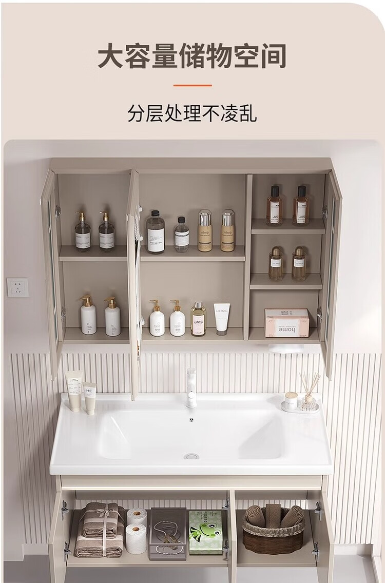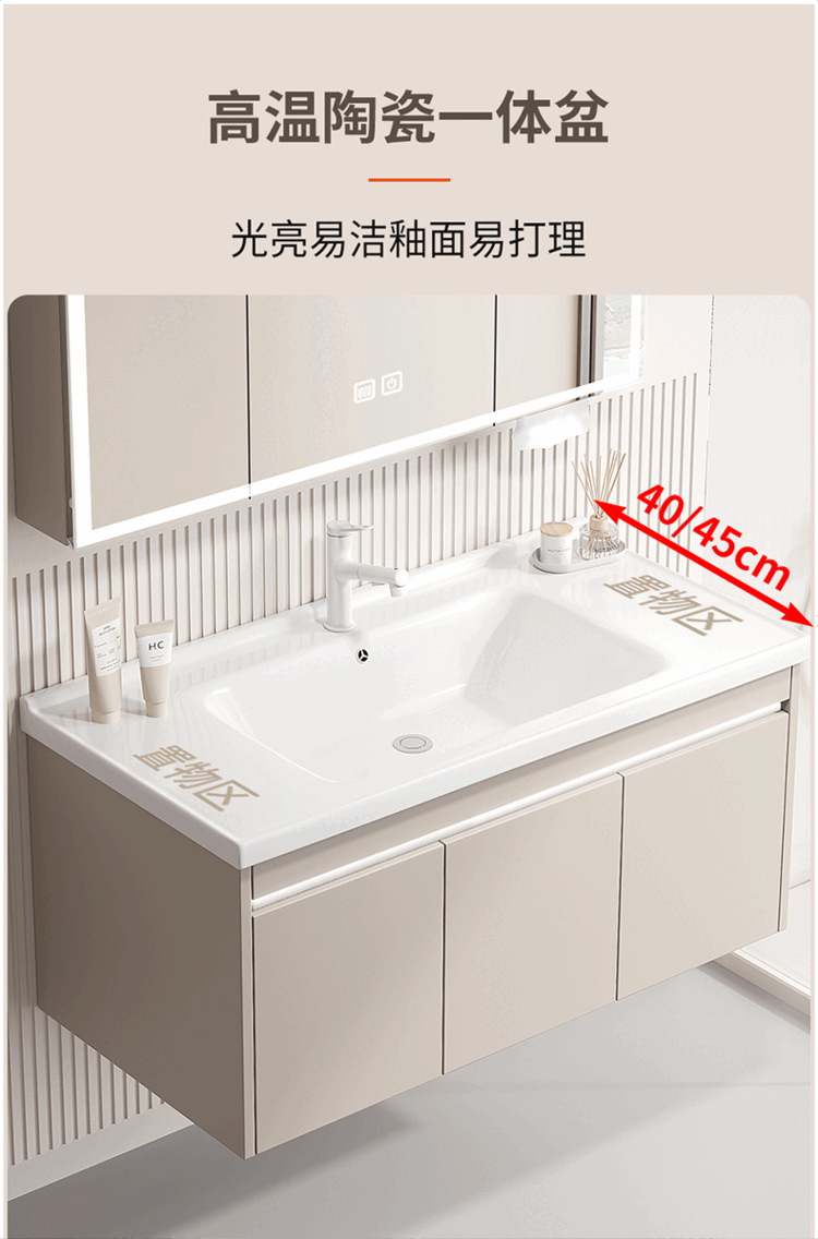 Jomoo's new small-sized integrated ceramic basin with side storage width 40cm, wash basin and narrow bathroom cabinet combination 45CM deep, thickened honeycomb aluminum 8040 with side cabinet + smart mirror cabinet