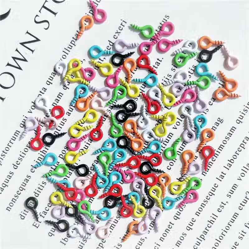 Colored sheep's eye nails, self-tapping screws, rings, rings, hooks, pendants, diy keys, toys, metal fasteners, colored sheep's eye nails - mixed colors - 100 pcs/bag