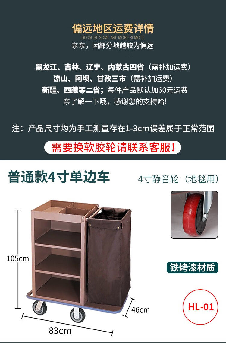 Huilan Guest Room Linen Cart Hotel Work Cart Hotel Cleaning Cart Cleaning Trolley Cleaning Cart Storage Service Cart H1 Ordinary Unilateral Cart 4-inch Silent Wheel