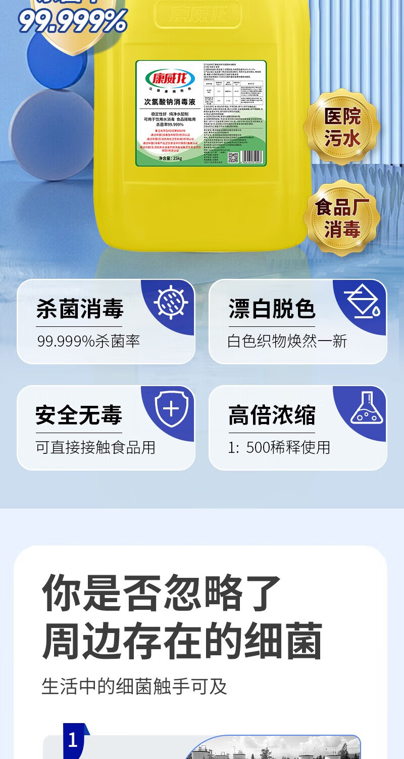 Sodium hypochlorite disinfectant solution food factory breeding farm industrial bleaching sewage hospital 50 catties commercial barrel 25kg sodium hypochlorite disinfectant