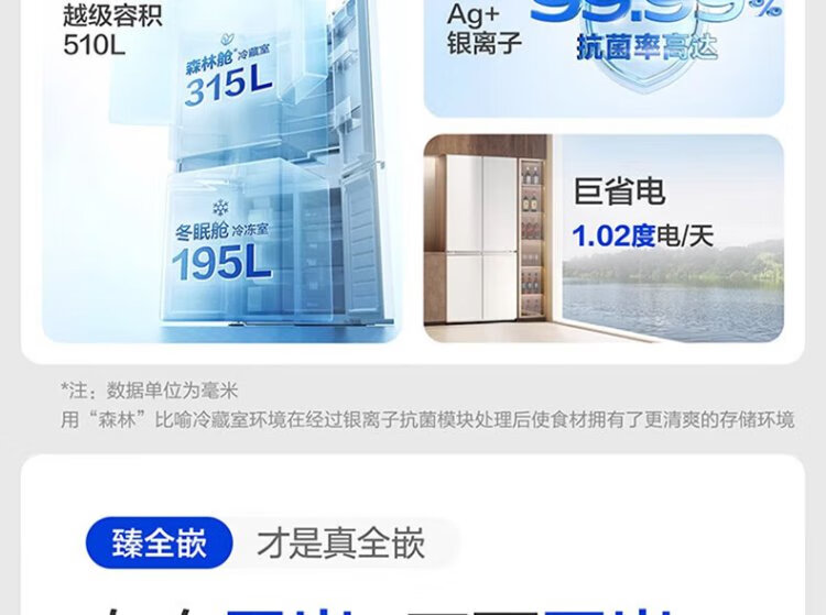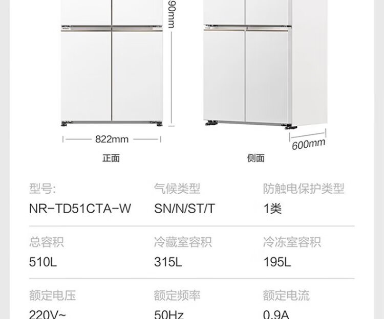 Panasonic 510L 60cm ultra-thin fully embedded automatic ice making silver ion antibacterial cross four-door household frost-free inverter refrigerator NR-TD51CTA-W Spring Snow White