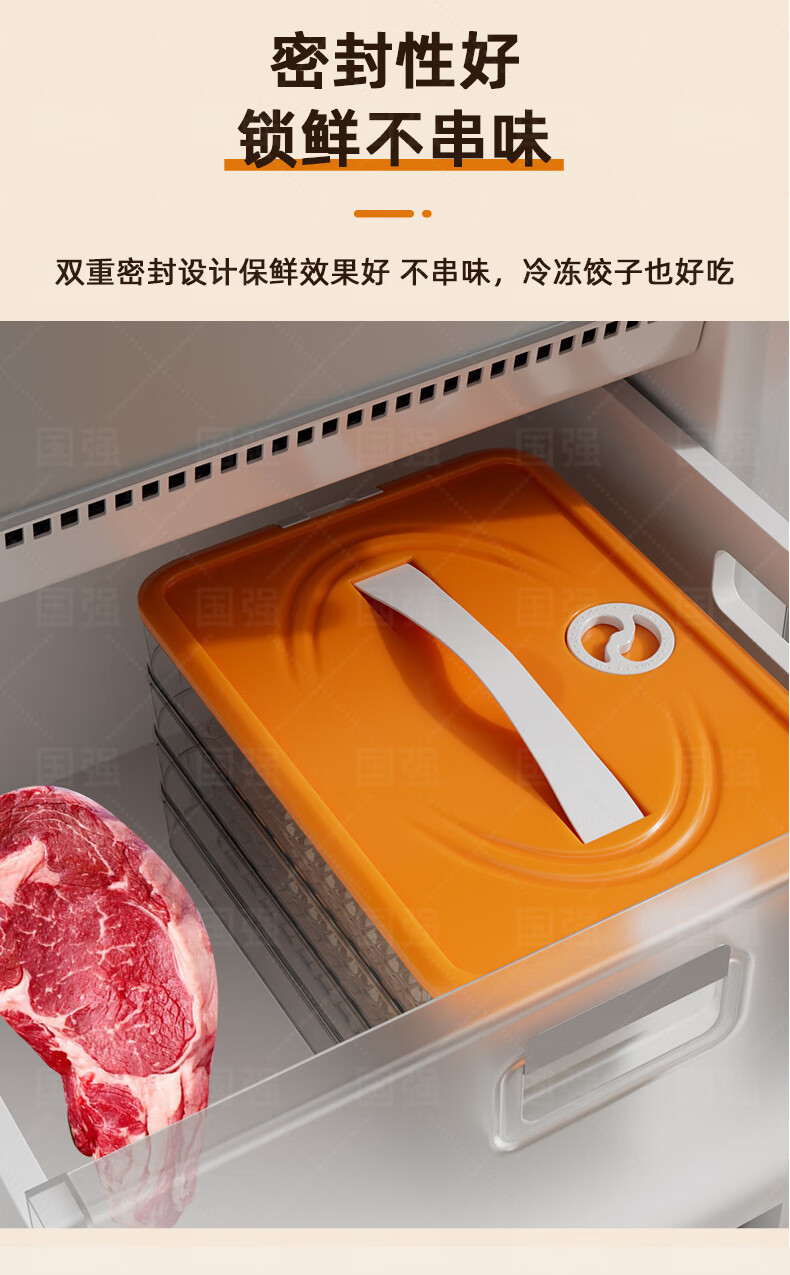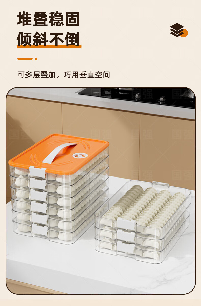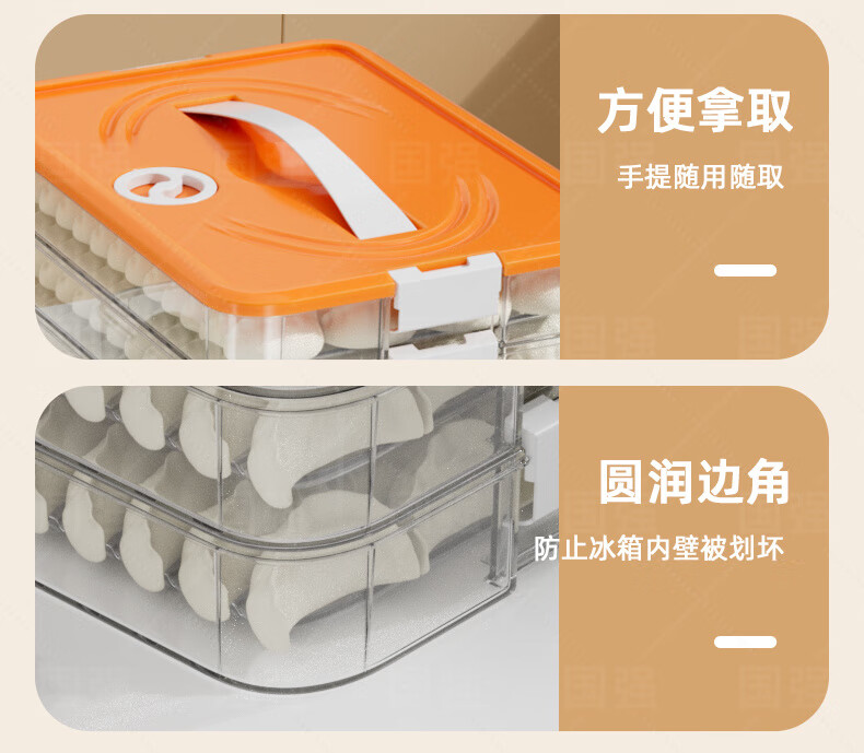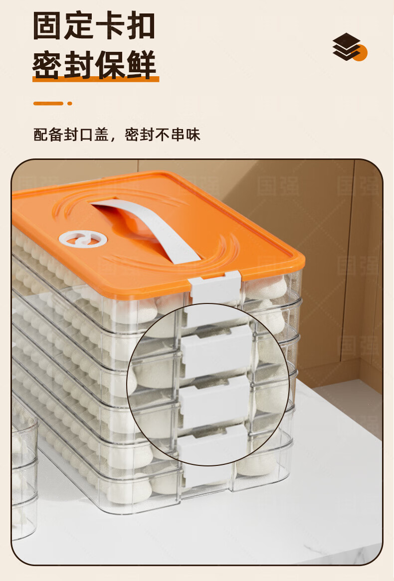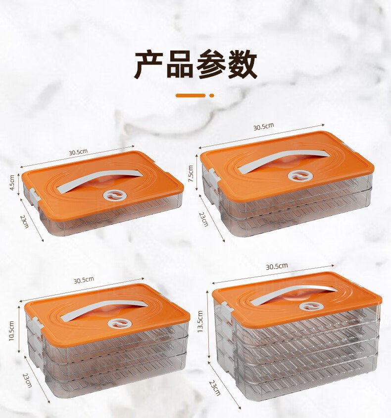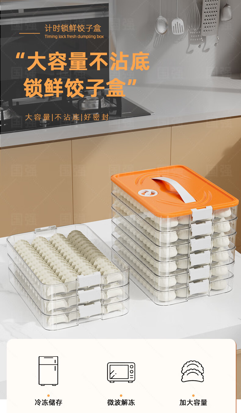 Ye Yu dumpling box special frozen dumplings multi-layer refrigerator storage box household dumpling tray quick-frozen crisper freezer box supermarket quality PP material - time lock fresh orange four layers and one cover丨holds 258 dumplings丨portable meter