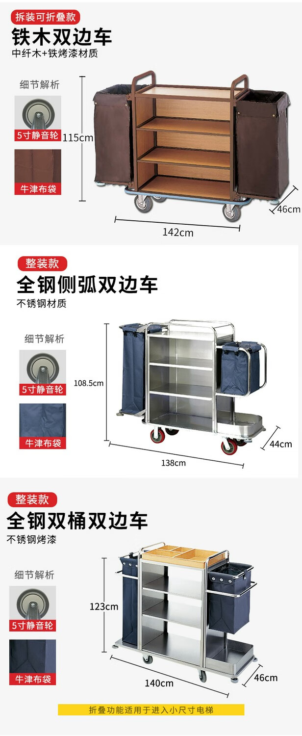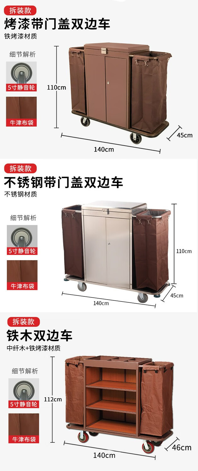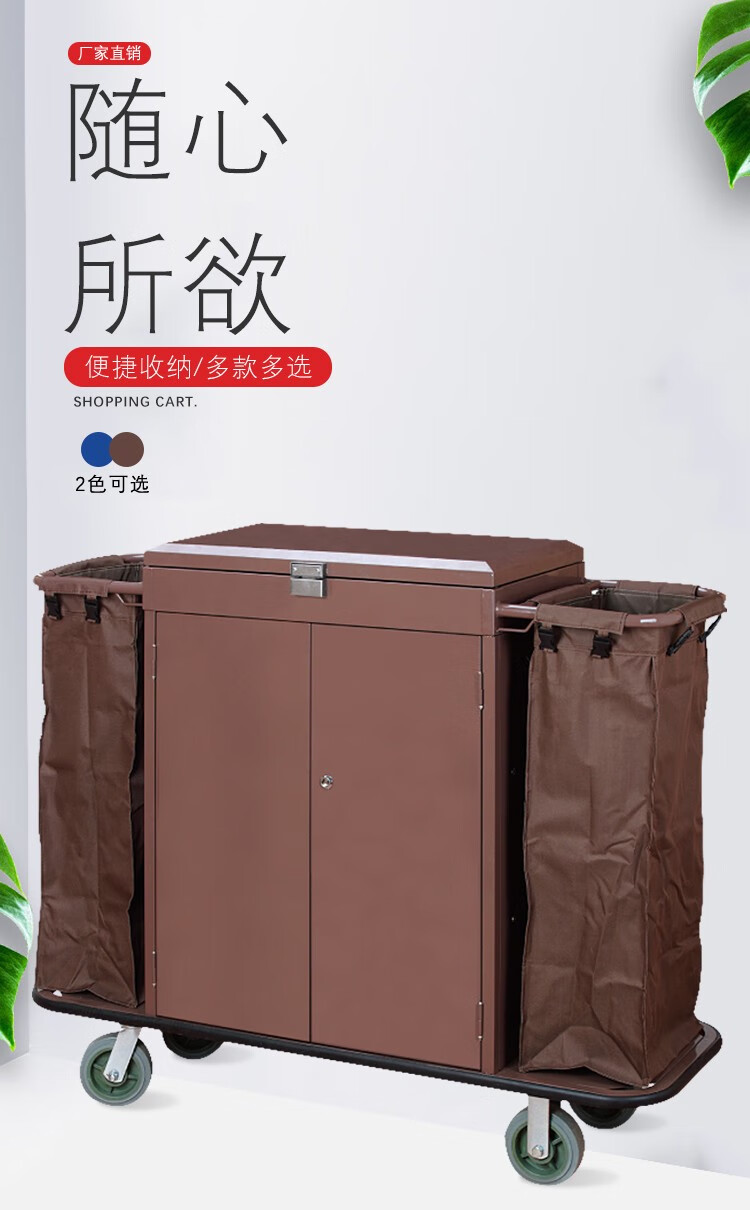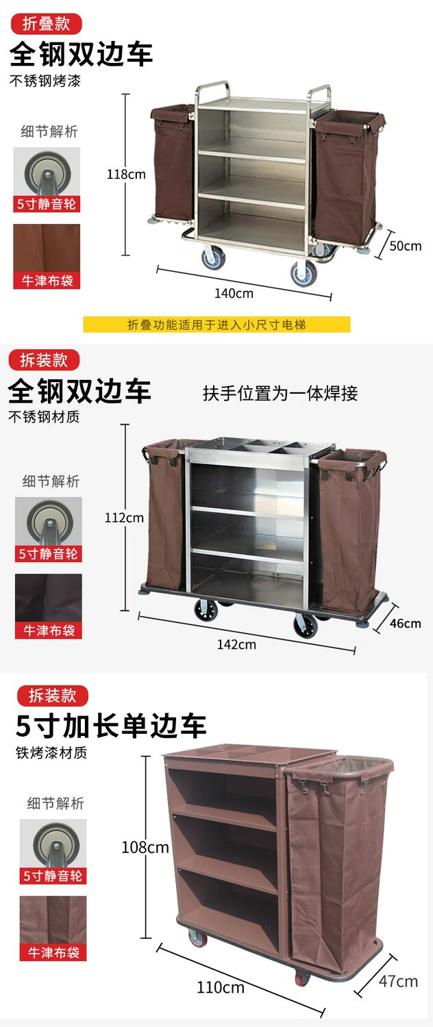 Oufeng Hotel Linen Cart Hotel Work Car Housekeeping Service Cart Double-sided Thickened Stainless Steel Storage Cart Trolley Blue 10-Tube Conical Removable Linen