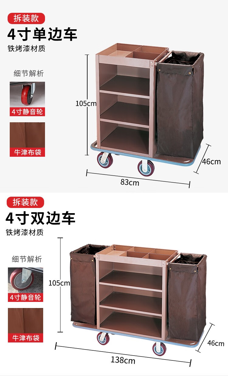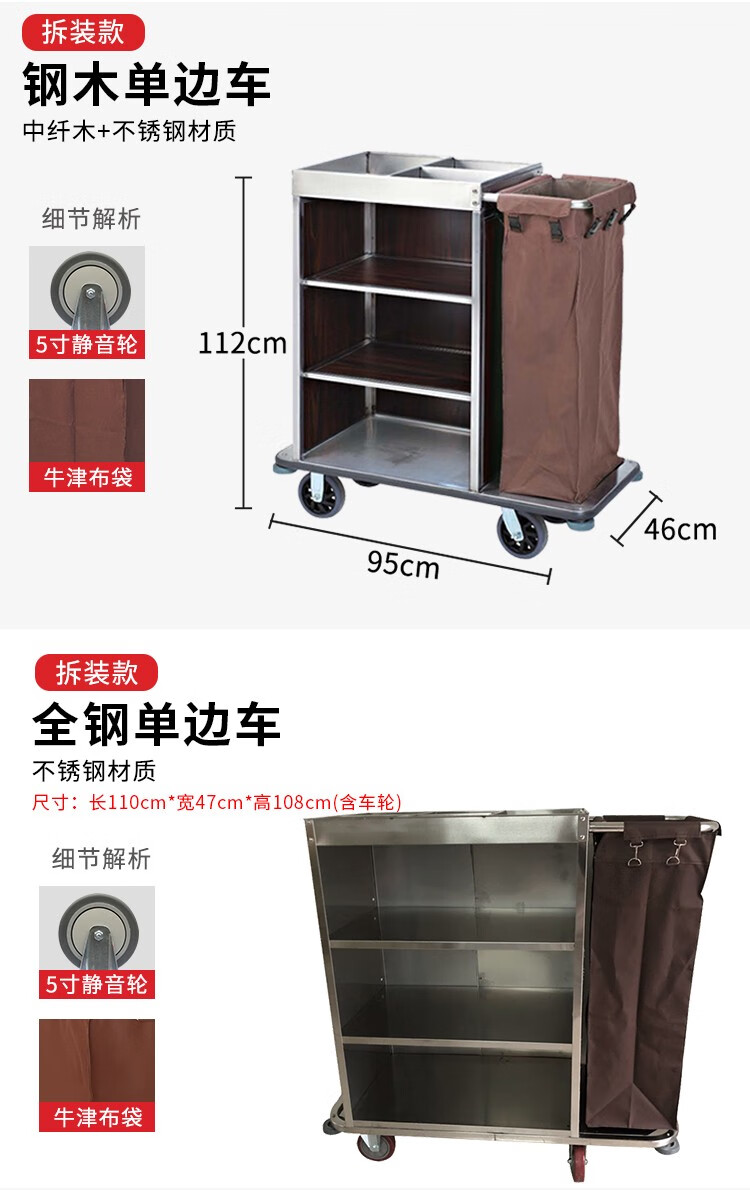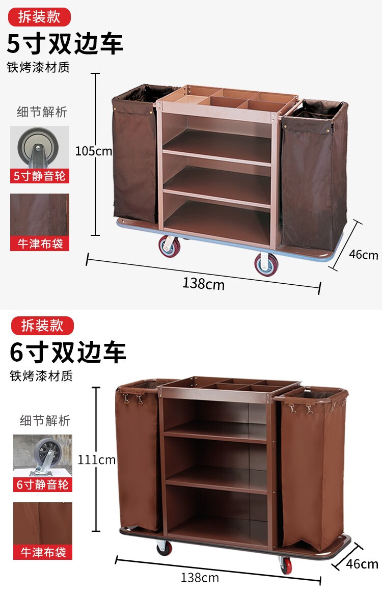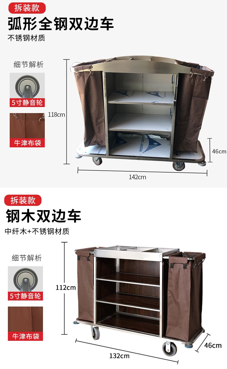 Oufeng Hotel Linen Cart Hotel Work Car Housekeeping Service Cart Double-sided Thickened Stainless Steel Storage Cart Trolley Blue 10-Tube Conical Removable Linen