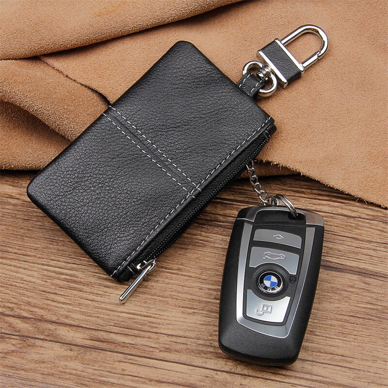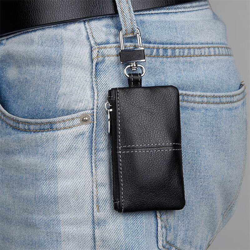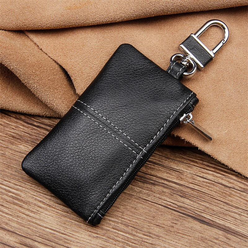 Kangaroo (KANGAROO) genuine leather coin purse for home use genuine leather car key cover first layer cowhide car key bag wholesale black (fine lines)