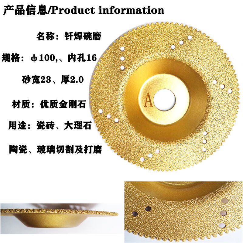 An Junsheng angle grinder diamond grinding disc stone dry grinding disc bowl grinding disc grinding disc marble ceramic tile quartz stone glass 60 mesh medium sand toothless gold bowl grinding 100mm one piece (buy 5 pieces and get 1 piece free)
