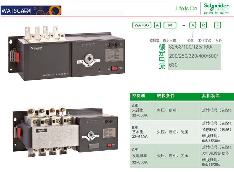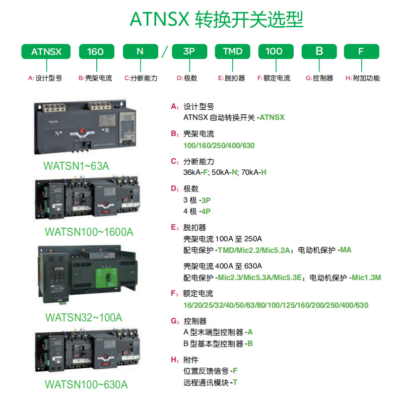 Dual power supply CB level automatic transfer switch WATSNA-3P4P16A25A32A40A 2P 16A 2P 16A