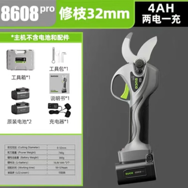 Shuchang electric pruning shears, fruit tree pruners, garden lithium electric shears, rechargeable electric shears 8608 Pro, Shuchang 8608 por, two batteries, one charge and free blades