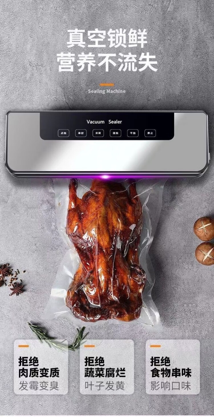 Household fully automatic vacuum sealing machine for wet and dry use. One machine + free 100 vacuum bags