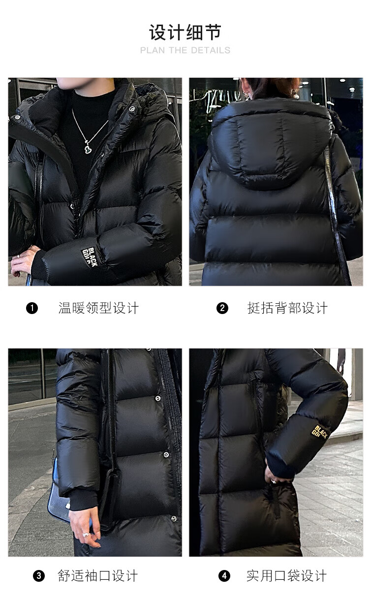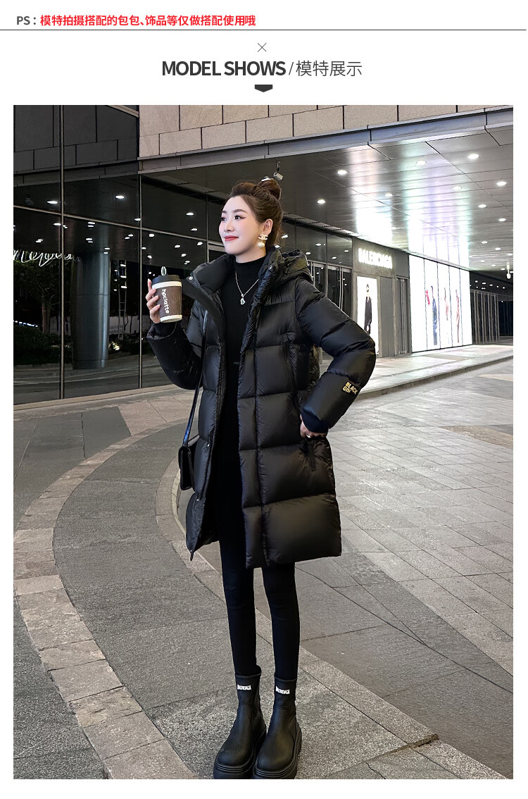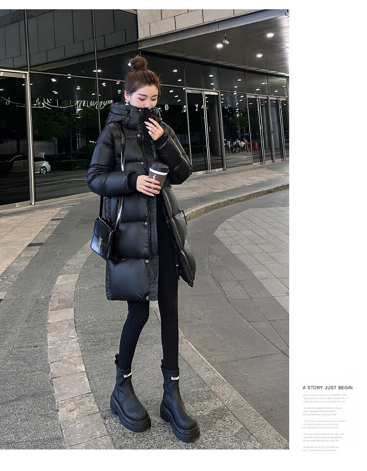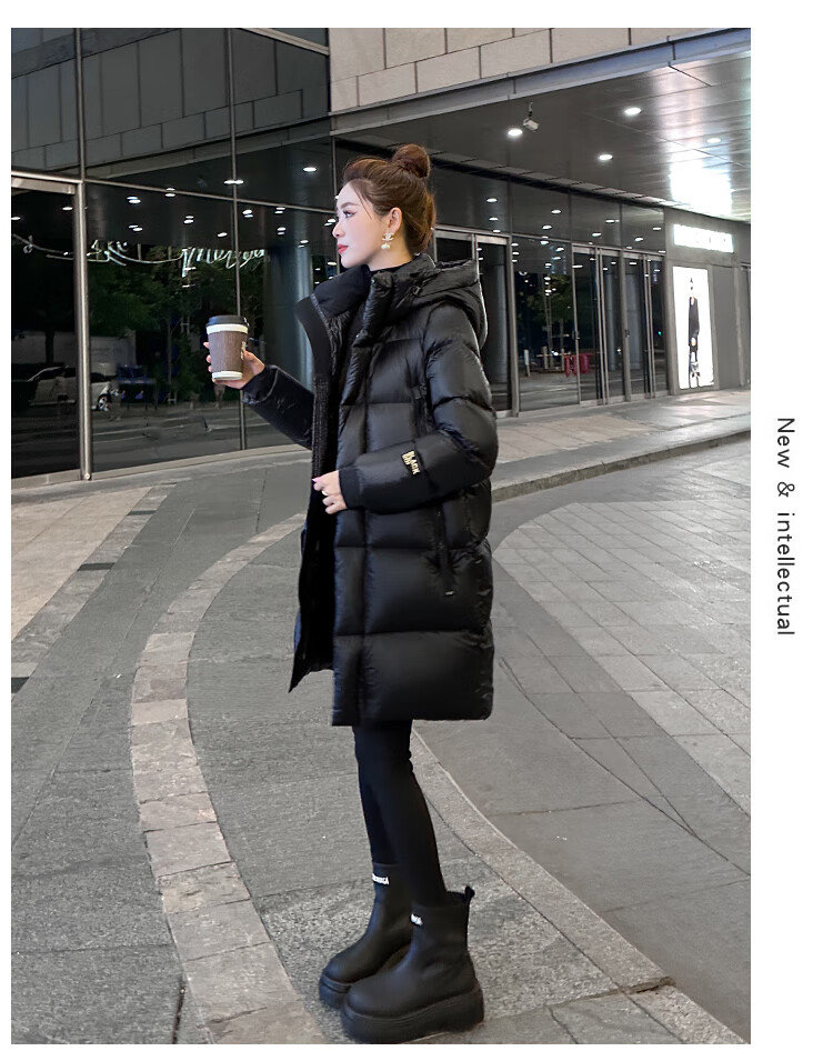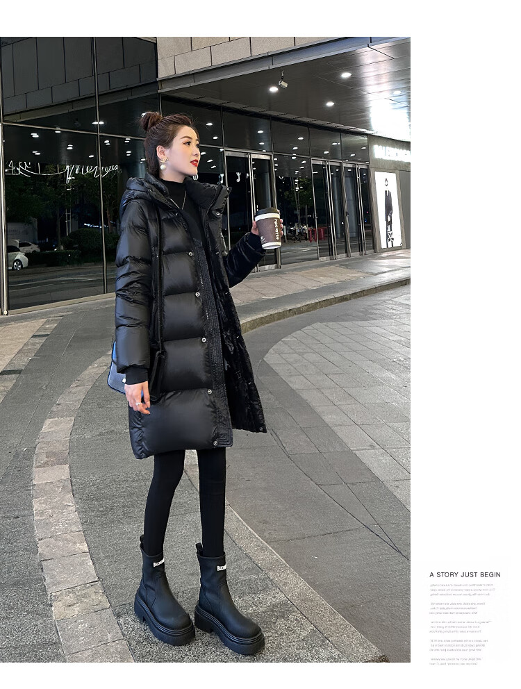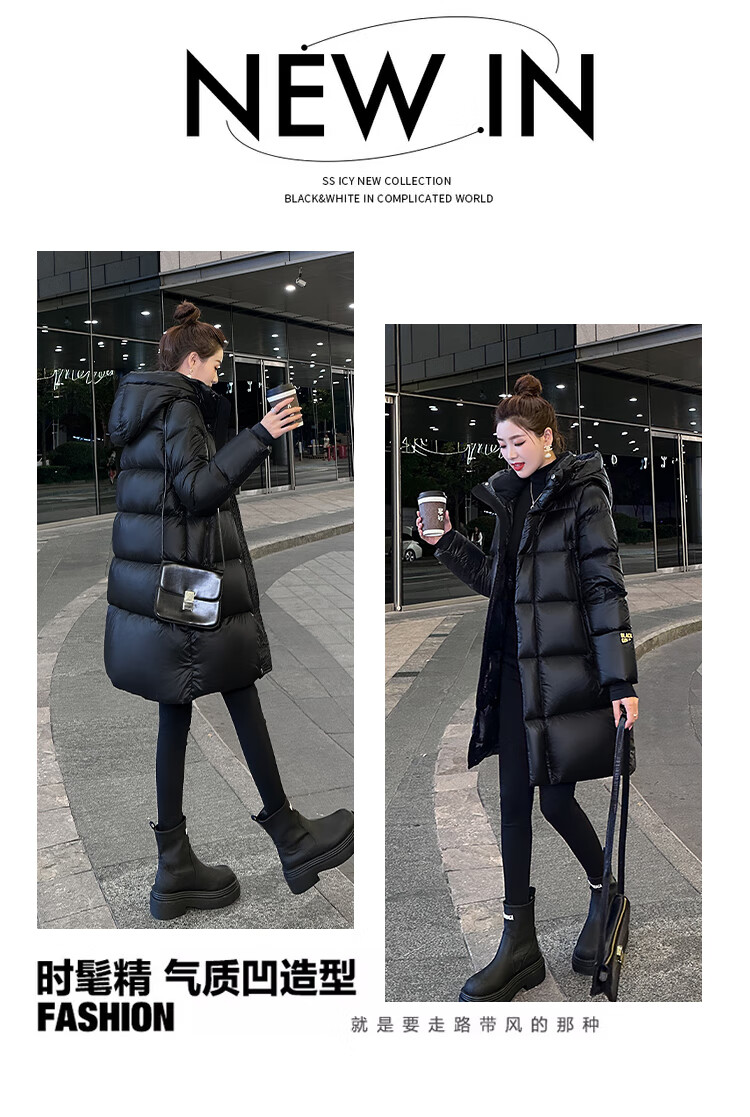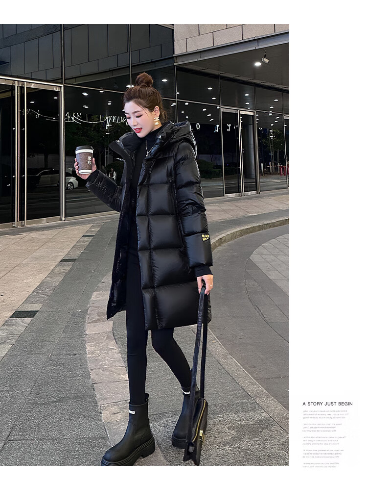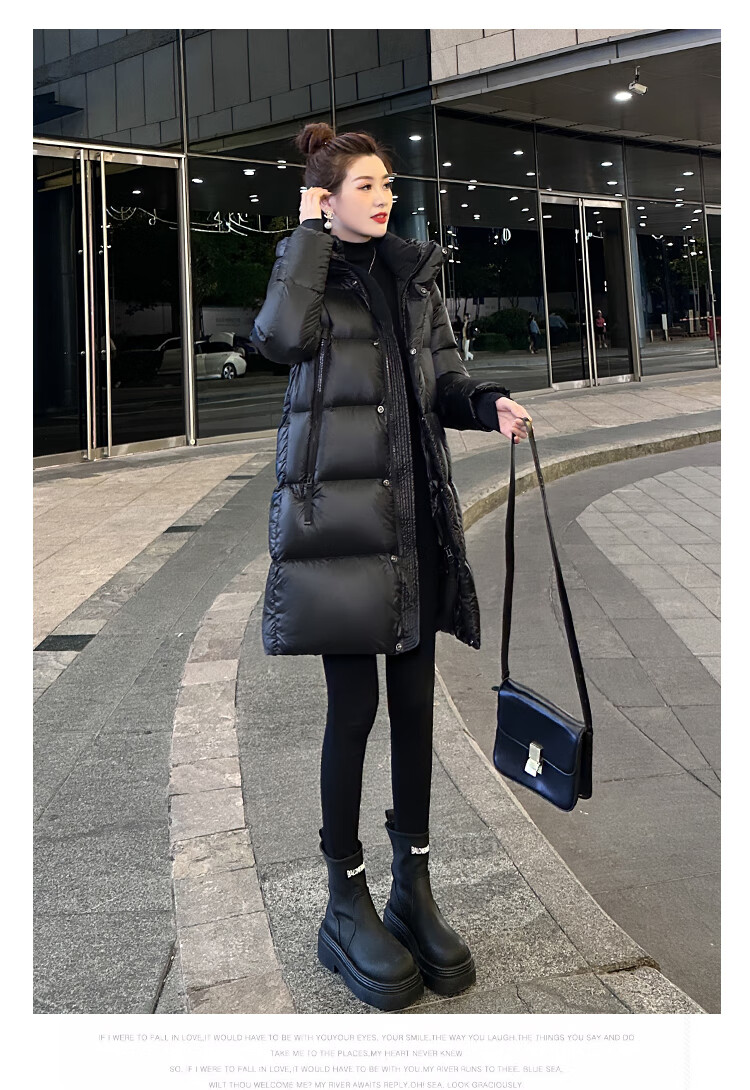 Aosijie high-end brand down jacket women's mid-length 2025 winter new loose temperament thickened white goose down hooded jacket black (black gold 90 white goose down series) M 105-120 catties