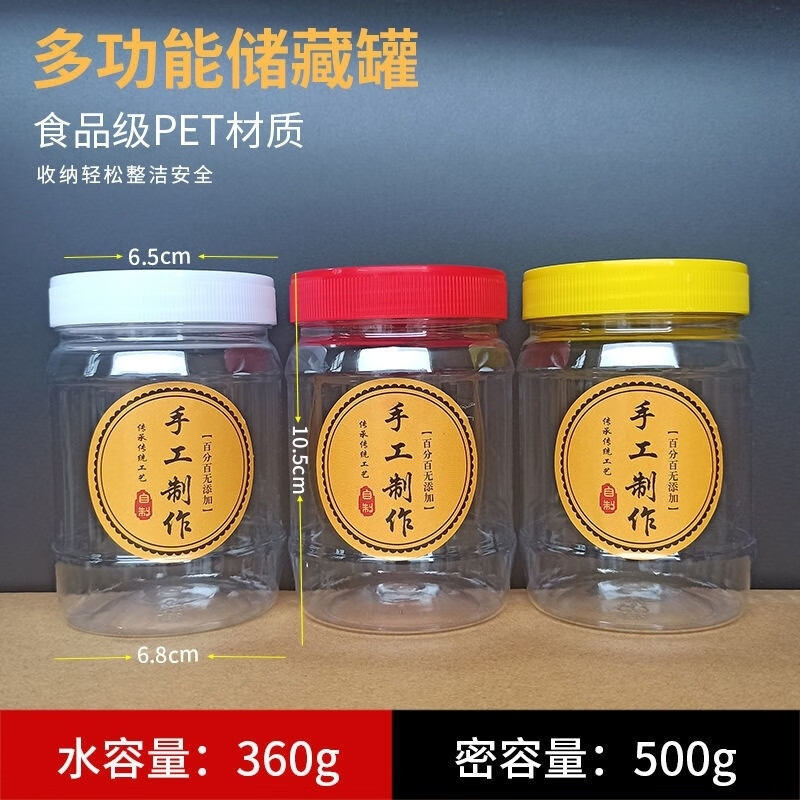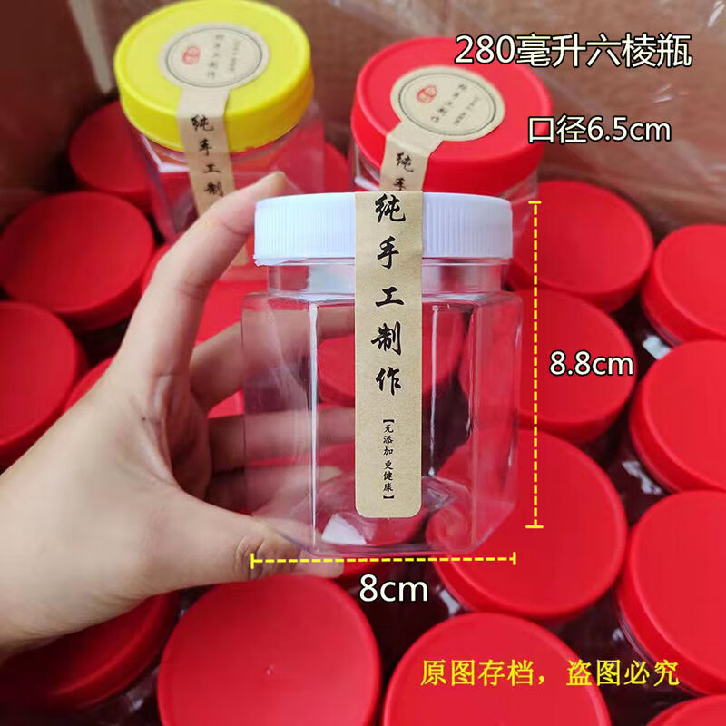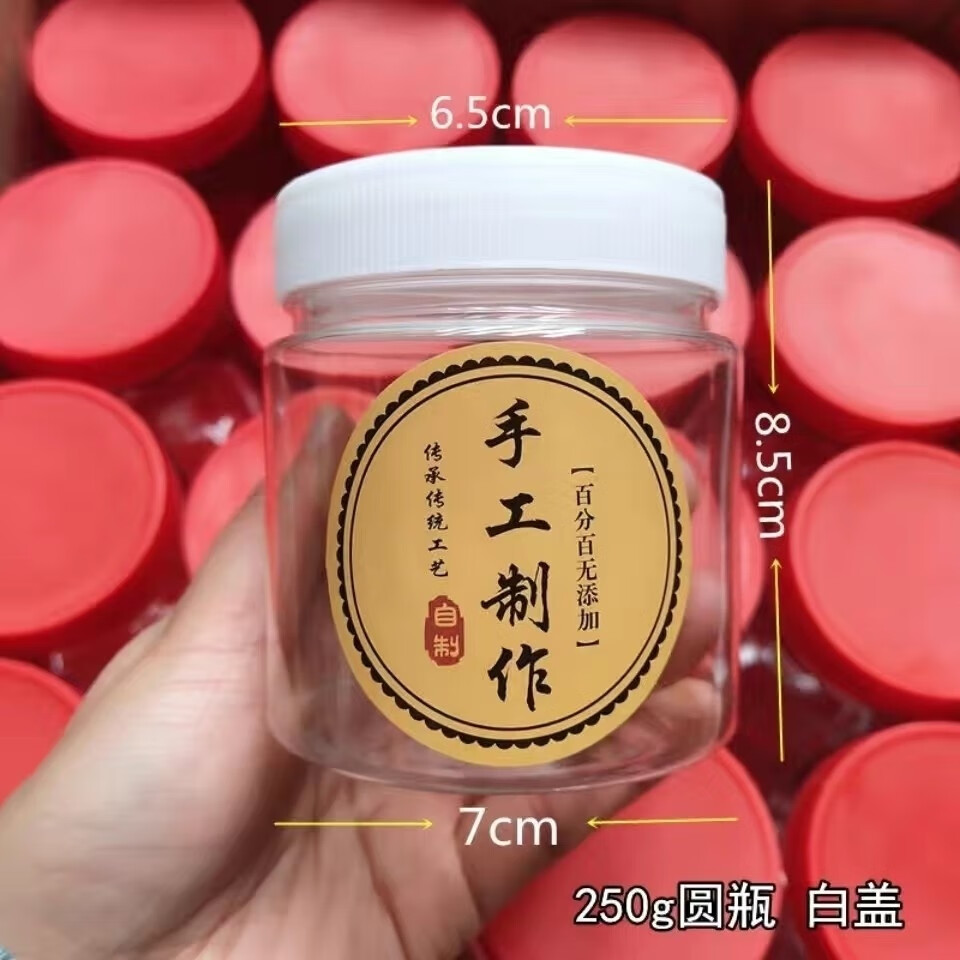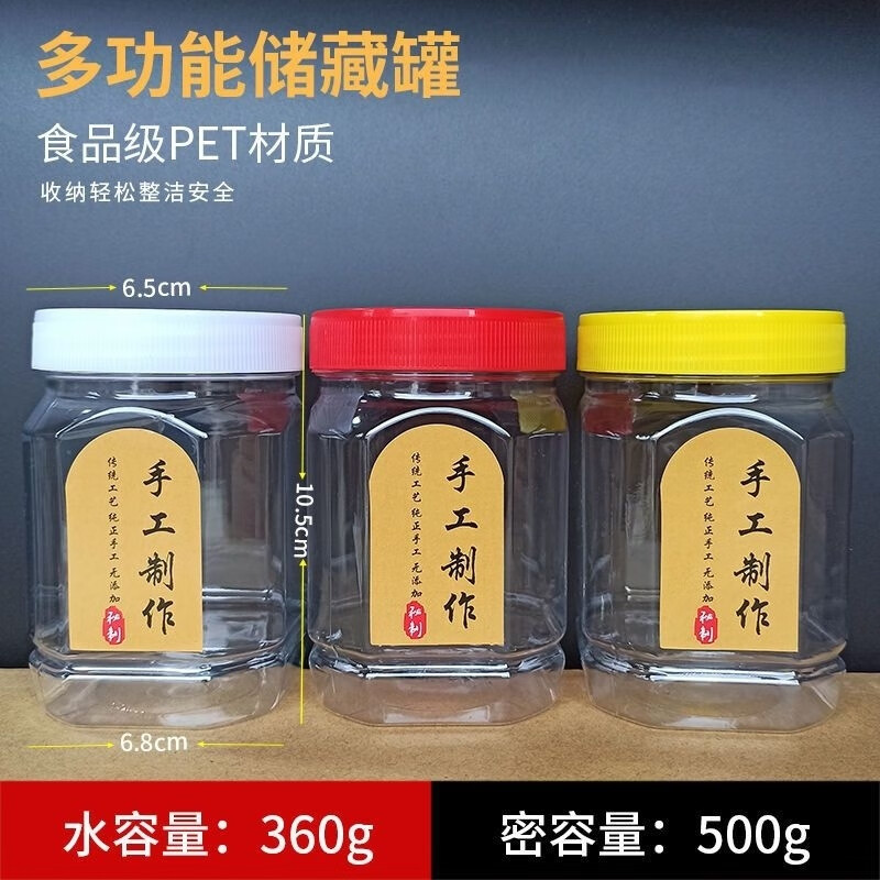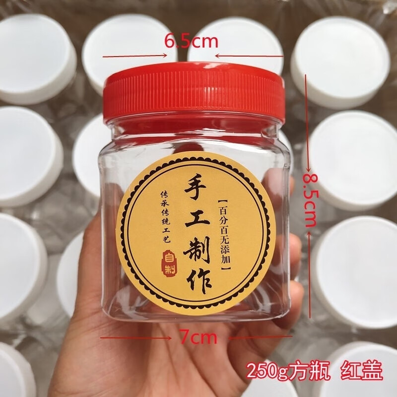 Ye Yu Yijin plastic bottle square round bottle 250g 280g 500g sesame paste chili tofu curd transparent sealed jar red lid (with inner lid + handmade label) 500g square bottle 8 pieces