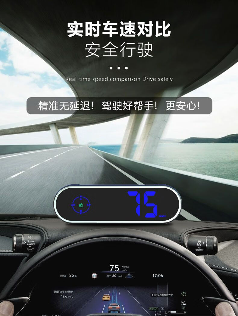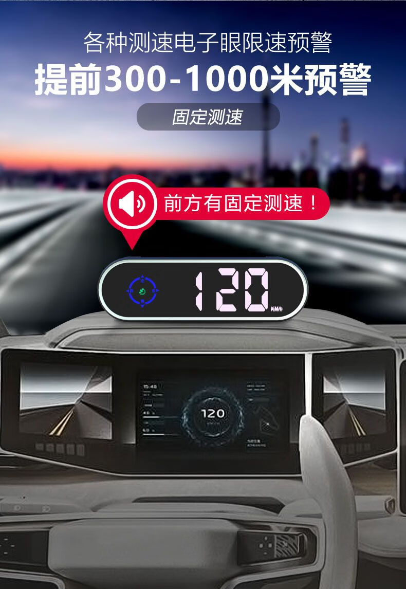 YWZR is suitable for the 2024 new electronic dog speed measuring driving safety warning device, speeding reminder HUD colorful speed display, upgraded version HUD colorful speed warning device + 2 meters USB