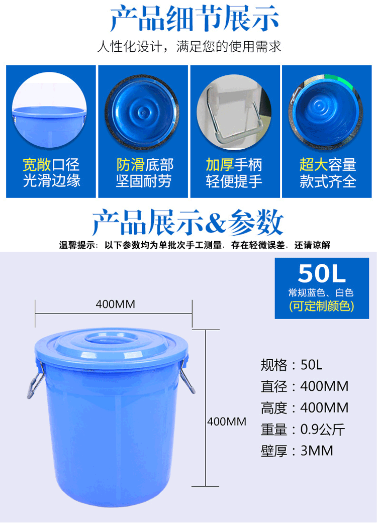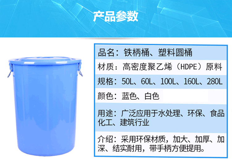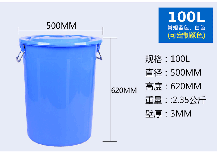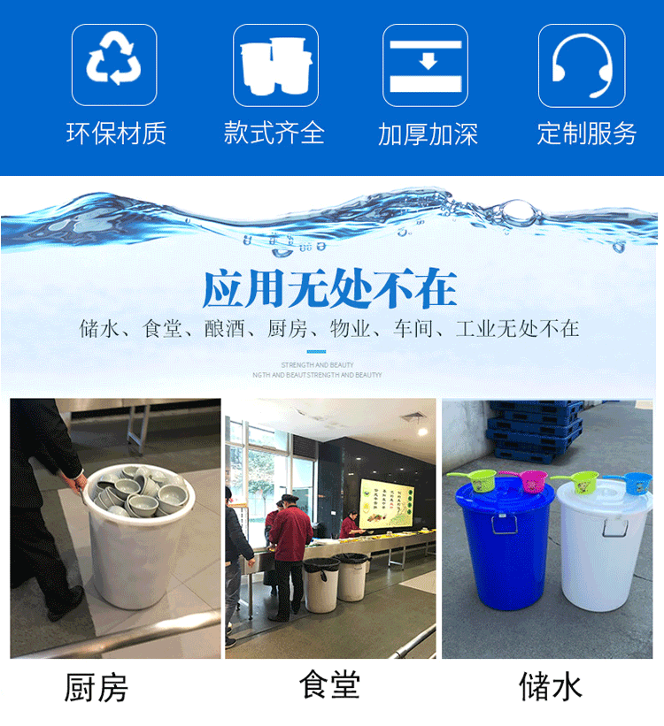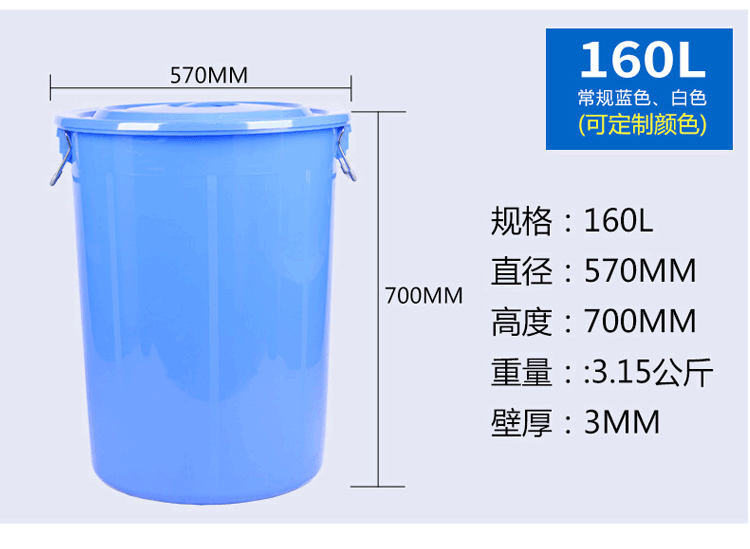 HK-370 thickened plastic round bucket large capacity hotel kitchen trash can blue without lid 60L